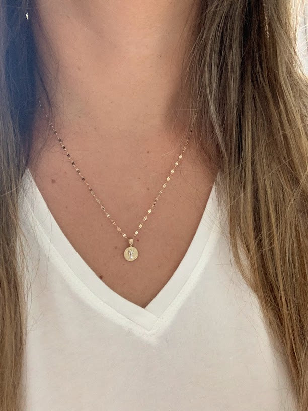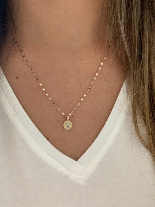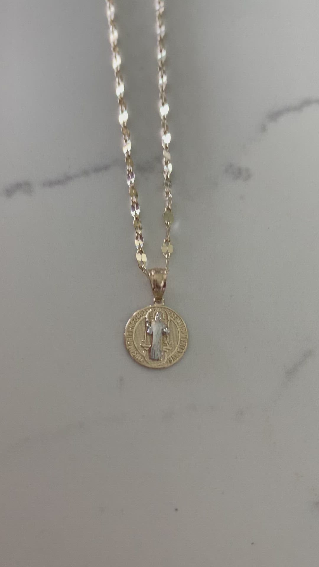 14K Gold Two Tone Saint Benedict Pendant on a Mirror Chain | Mirror Chain | 14K Gold Mirror Chain | Religious Necklace | Saint Benedict