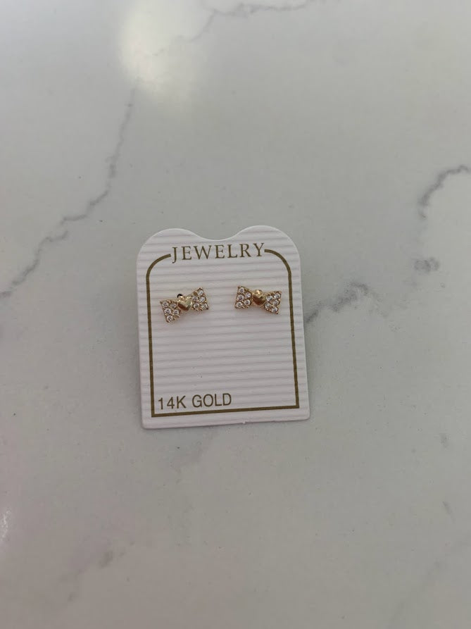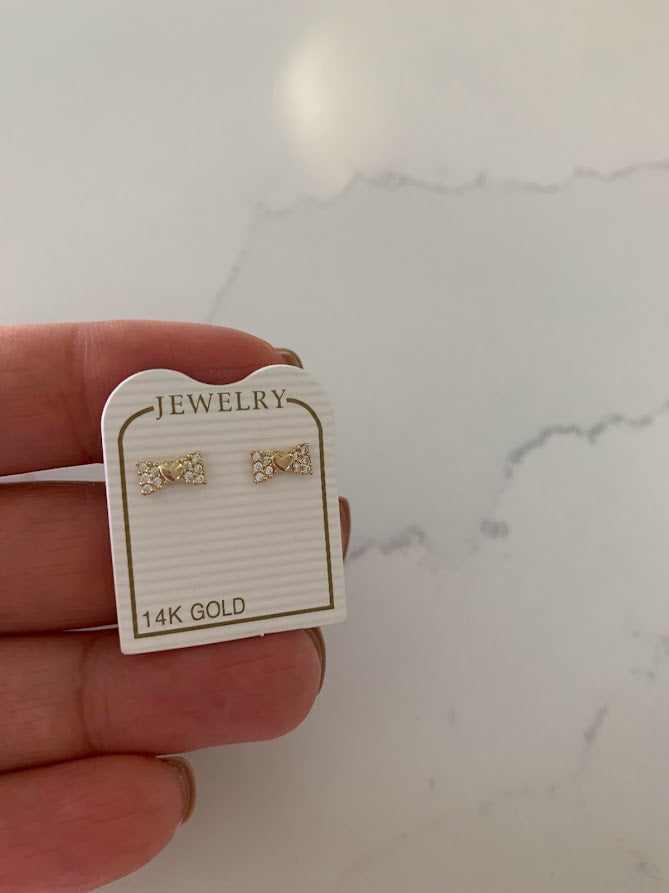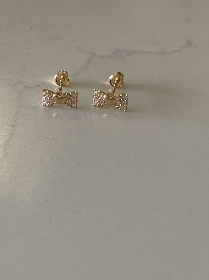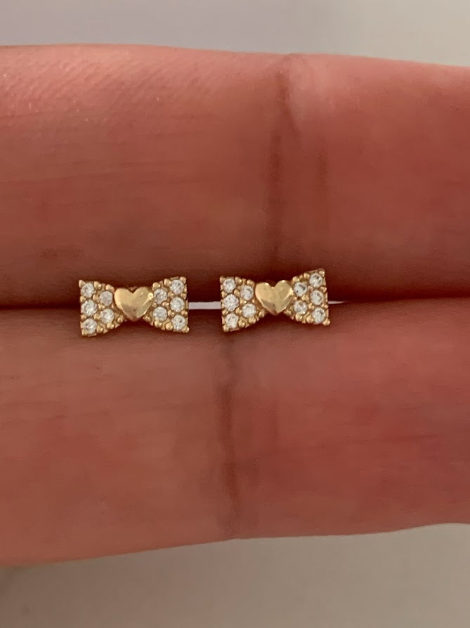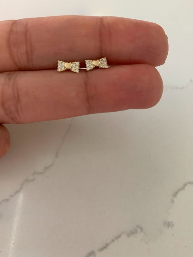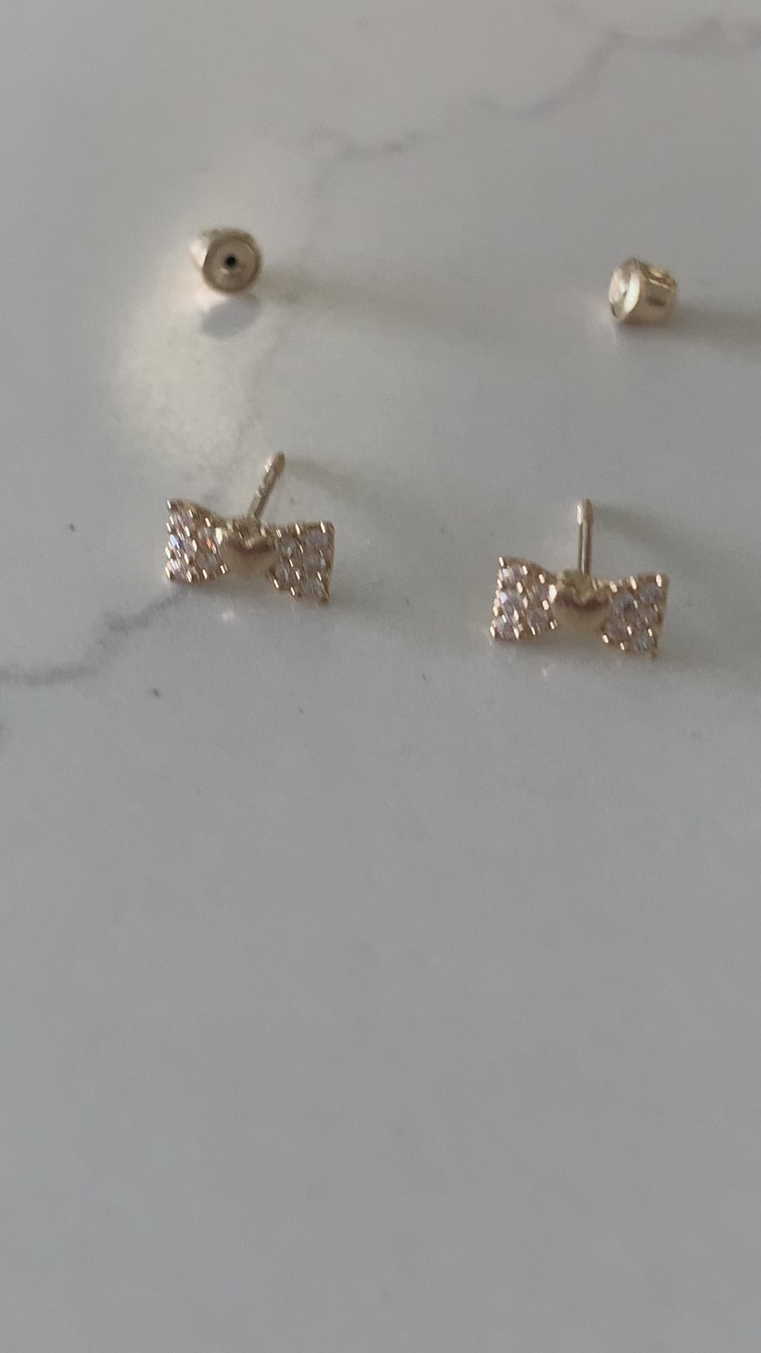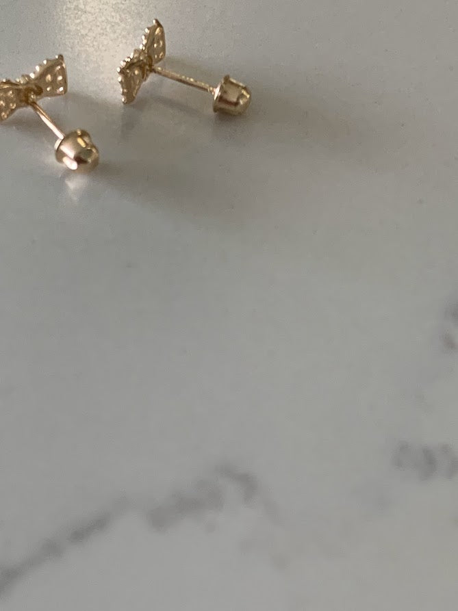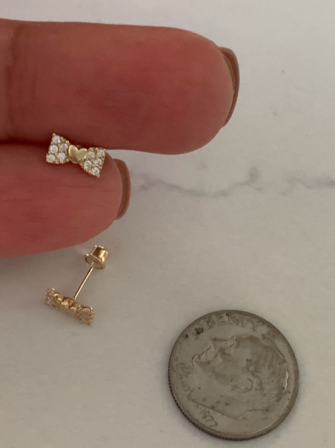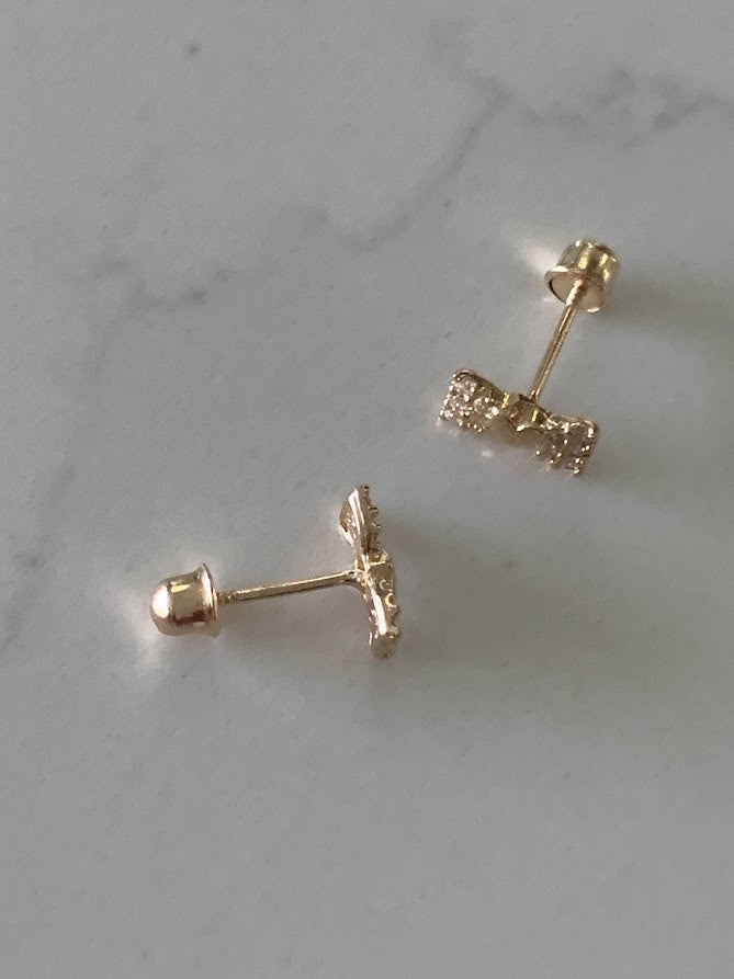 14K Solid Gold Bow Earrings, Screw backs, Solid Gold, Gold Bow Earrings, Dainty Ribbon Bow Stud Earrings