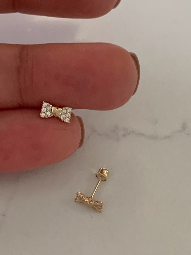 14K Solid Gold Bow Earrings, Screw-backs, Solid Gold, Gold Bow Earrings • Dainty Ribbon Bow Stud Earrings
