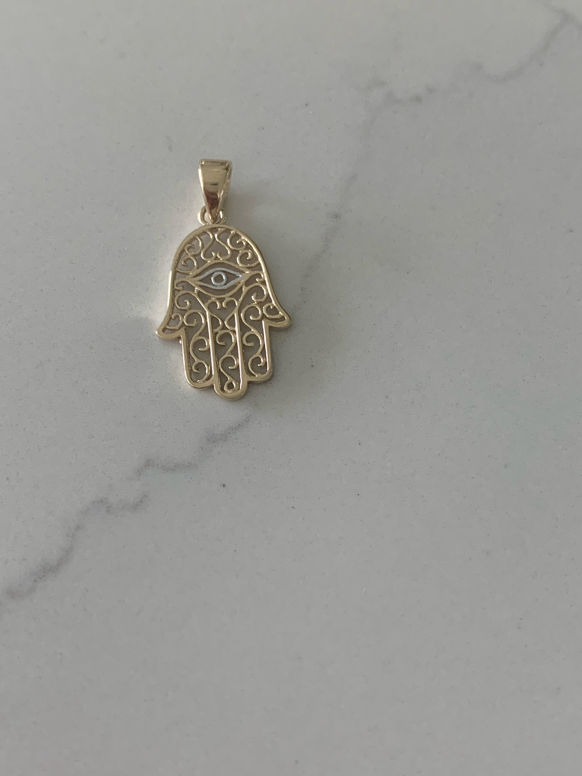 14K Solid Gold Hamsa with Evil Eye | 16MM x 11MM Two Tone Hamsa | Evil Eye Hamsa | Two TONE 14K Solid Gold Pendant