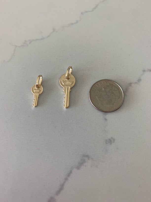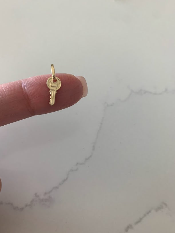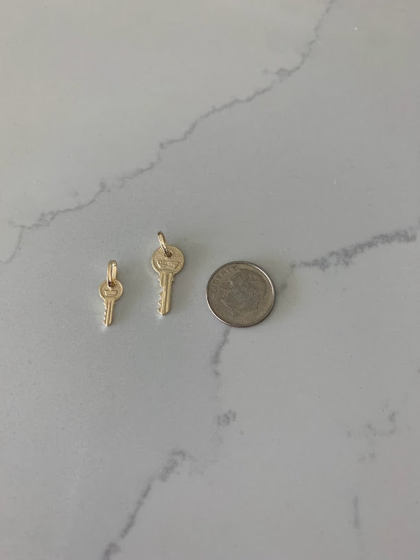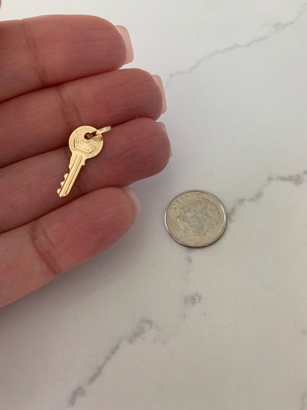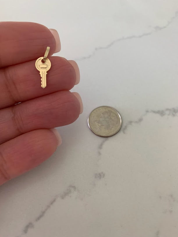 14K Solid Gold Dainty Key Pendant