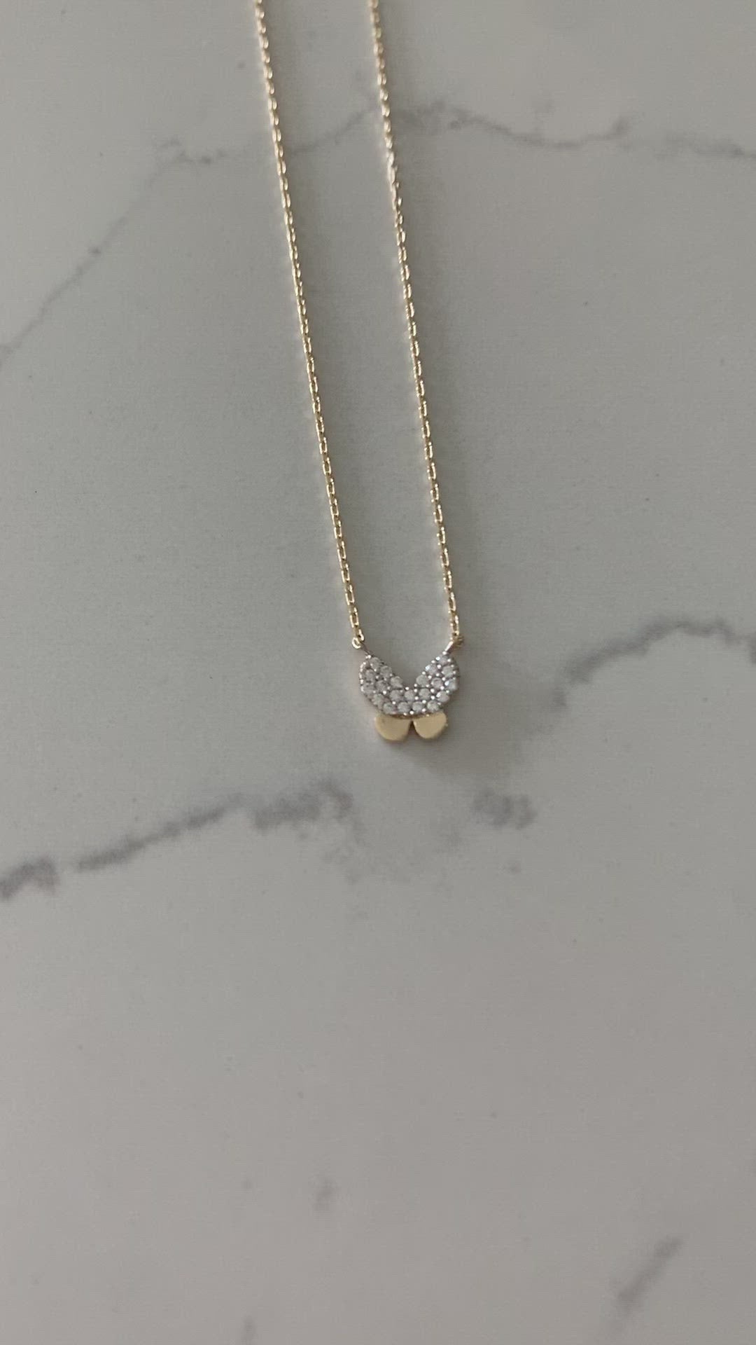 This beautiful 14K Gold Butterfly necklace can be worn as a choker, as a layering piece or part of a layering necklace set. It will add a statement to your outfit. It can be combined with multiple chains of different lengths to give the messy chains look. It comes available in gold color only.