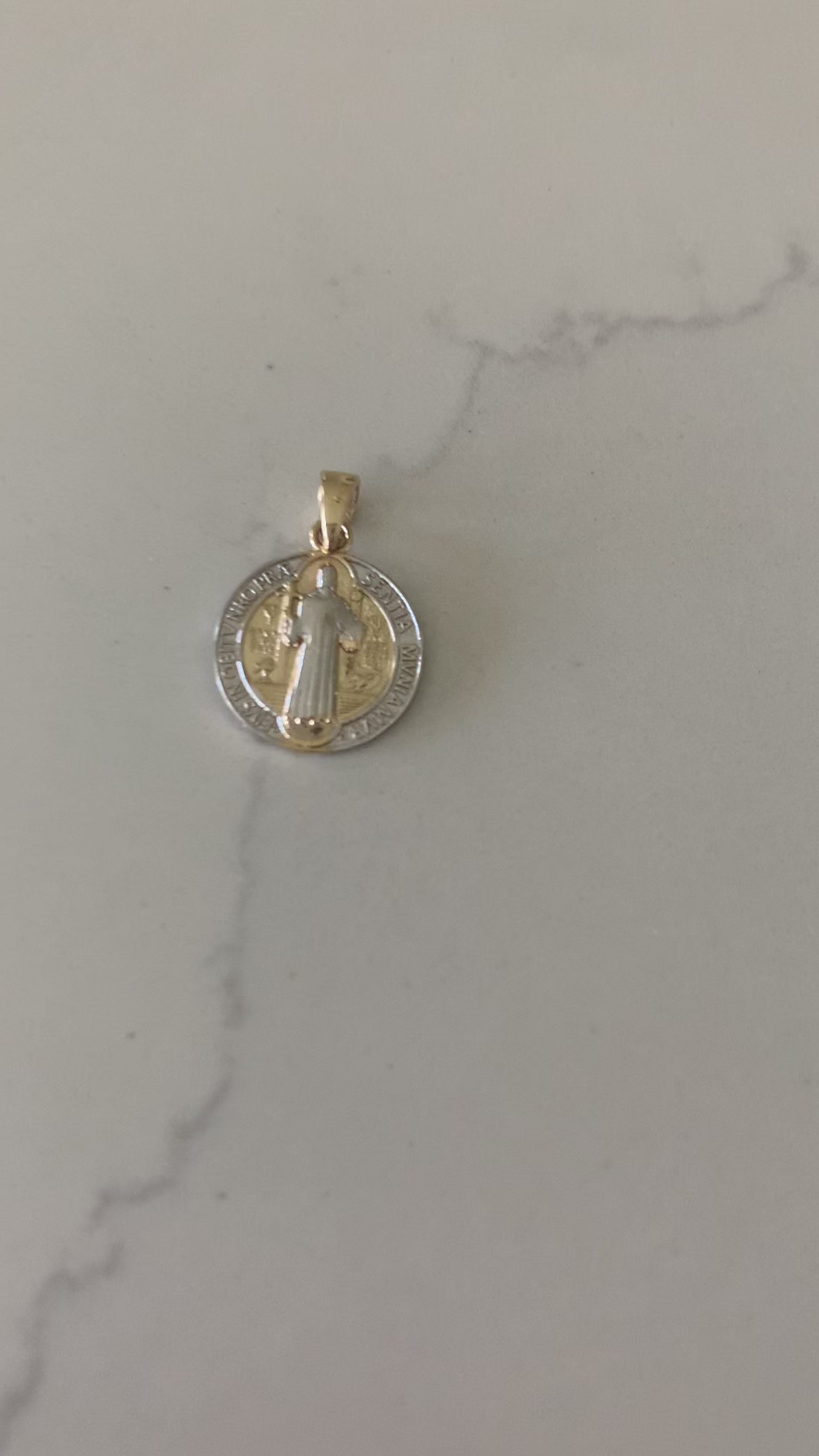 14K Solid Gold Saint Benedict Pendant can be combined with any other of our pendants to personalize your necklace