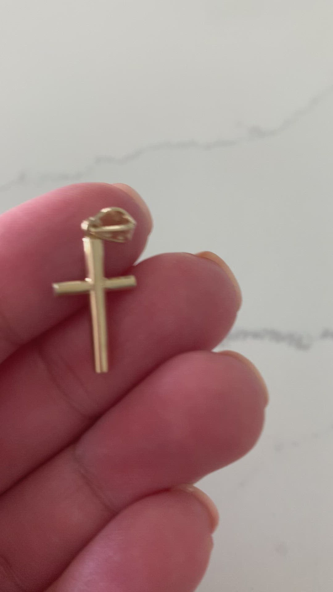 17MM 14K Solid Gold Cross | Yellow Gold Cross | Catholic Pendant | 14K Solid Gold Cross Christian Pendant | Tube Cross