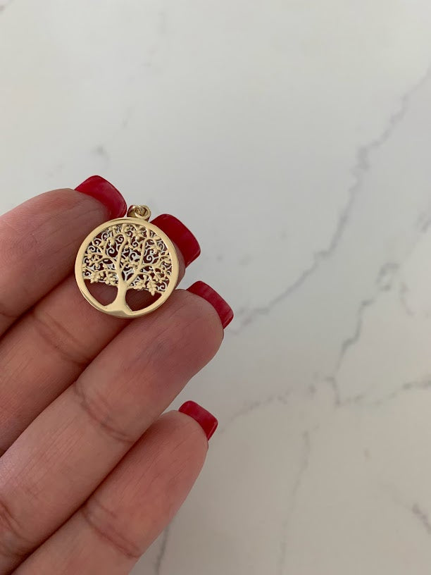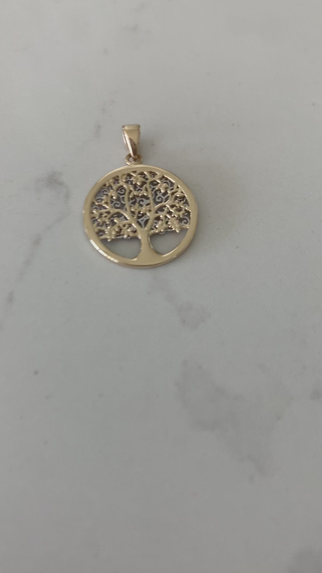 17MM 14K Solid Gold Family Tree | Yellow and White Gold Tree of Life | Tree Pendant | Two TONE 14K Solid Gold Pendant