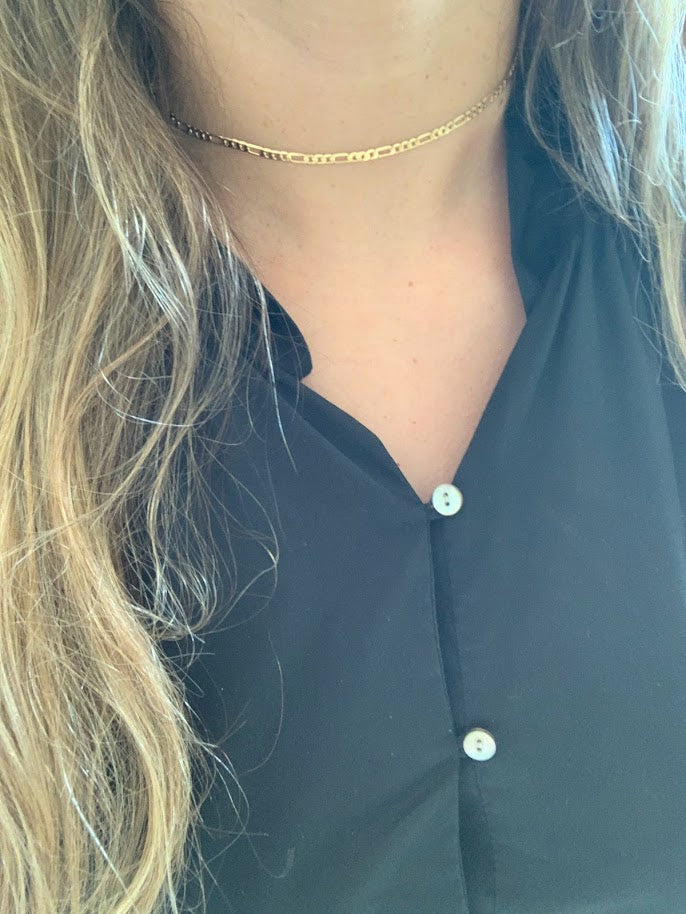 Gold Filled Flat Figaro Necklace, 3MM Dainty Chain Necklace, Layering Chain Necklace, Choker, Layering Necklace
