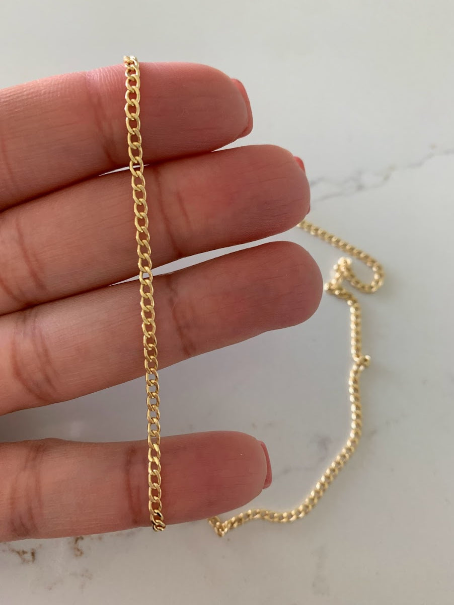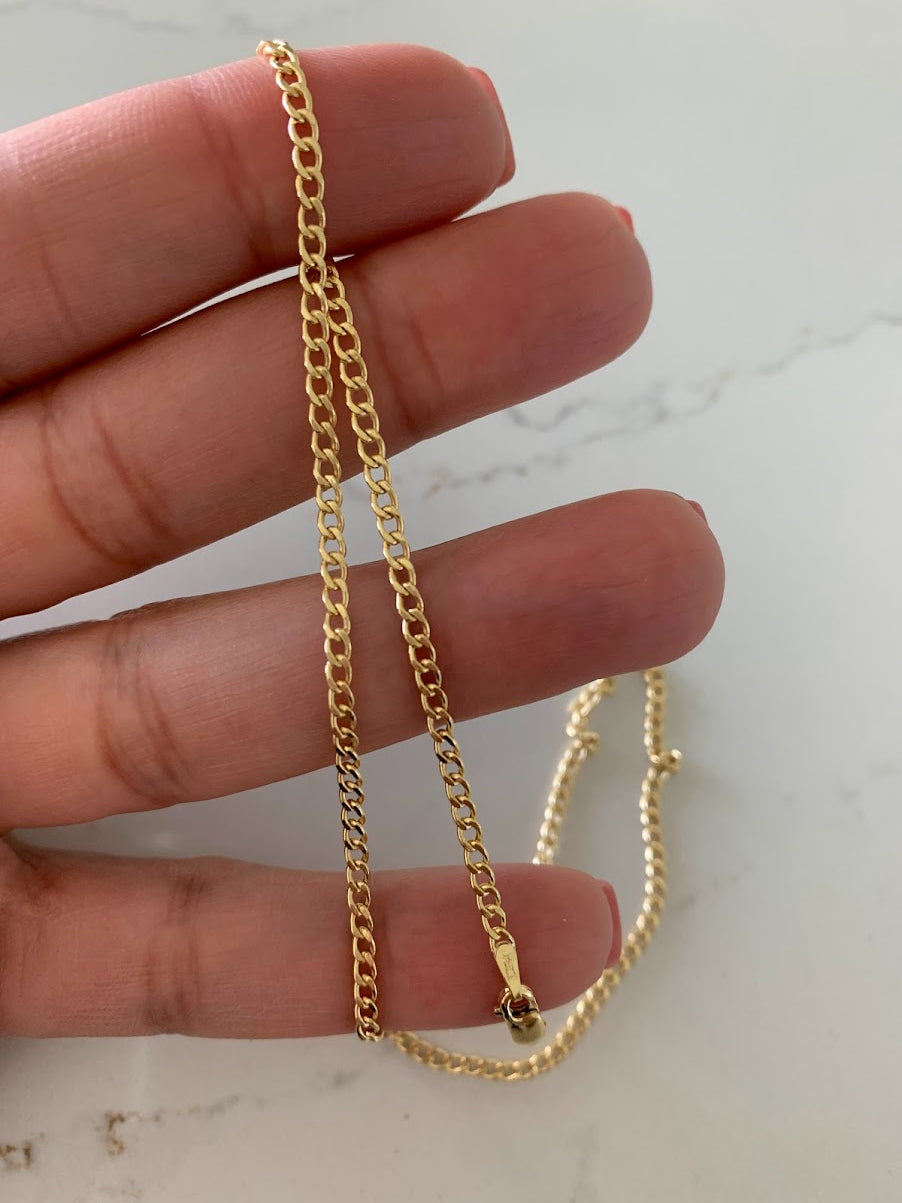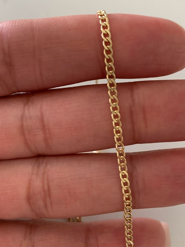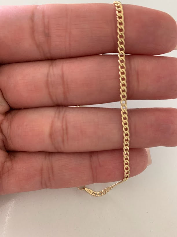 14K Gold 2.3mm Hollow Cuban Chain Link Anklet