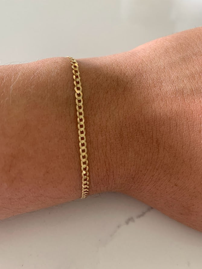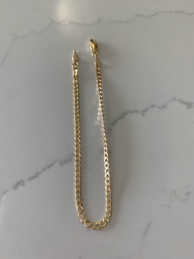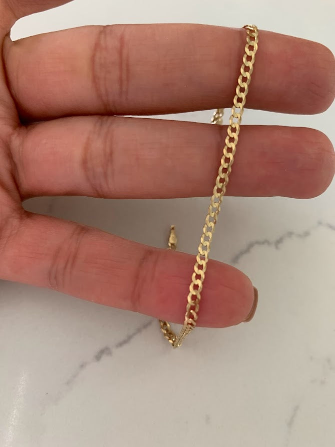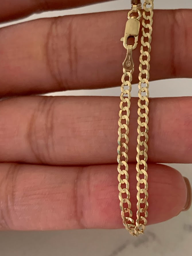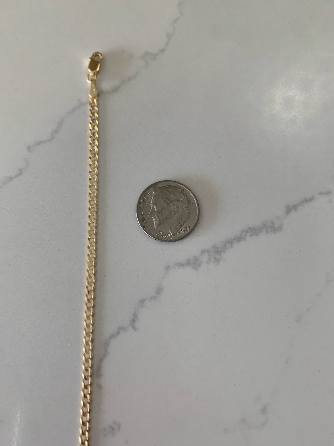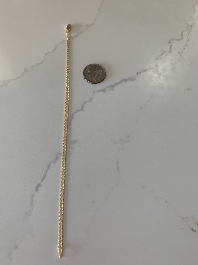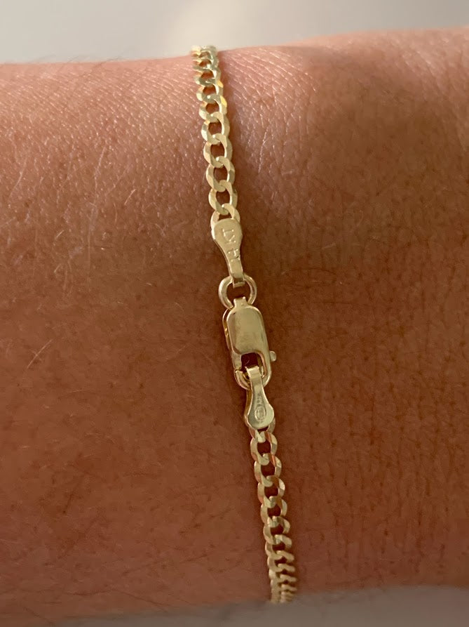 14K Gold Cuban Link Bracelet , 2.7MM Cuban Concave Open Link, 7" Length, Lobster Clasp, Adult Bracelet
