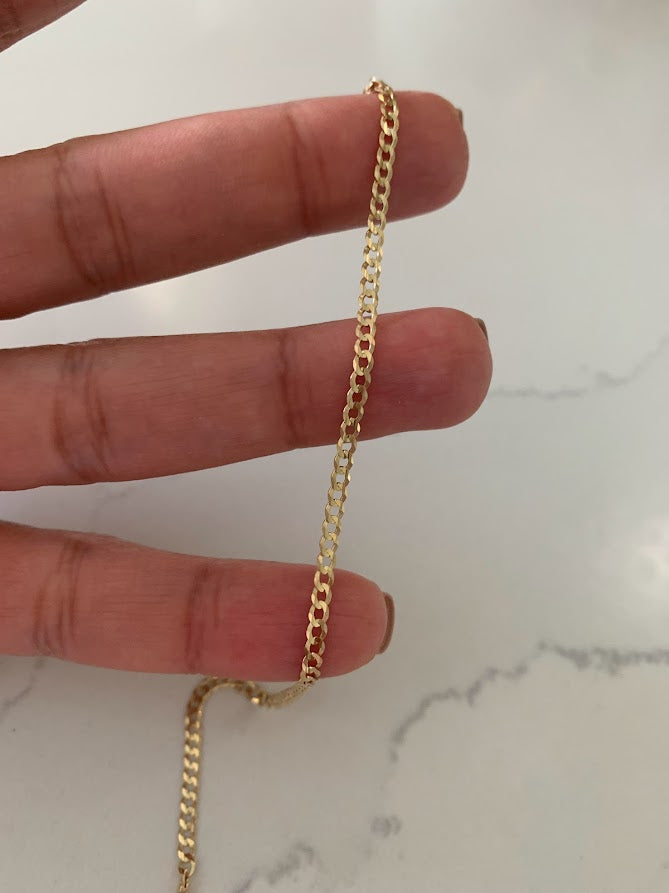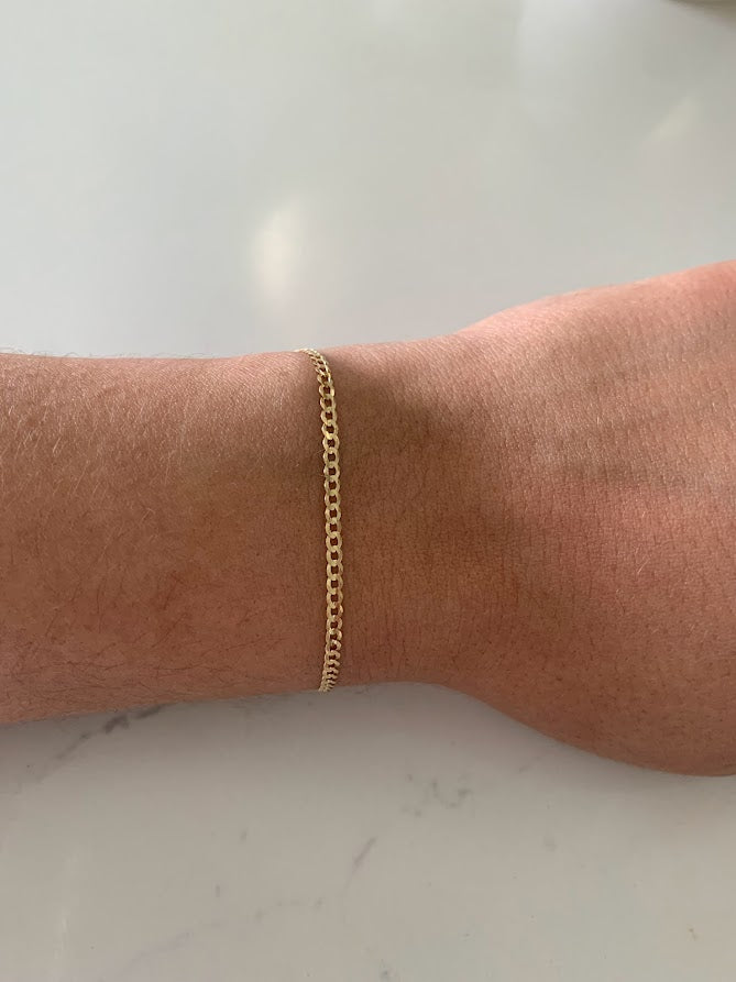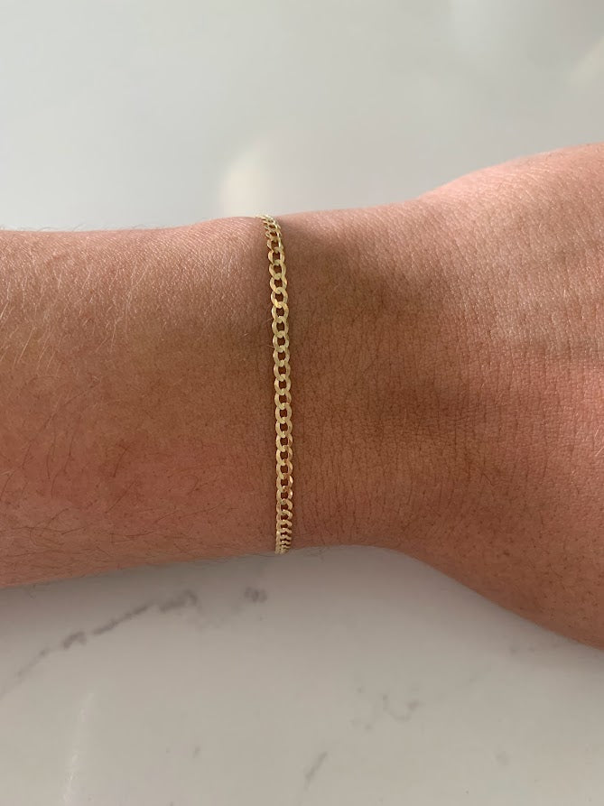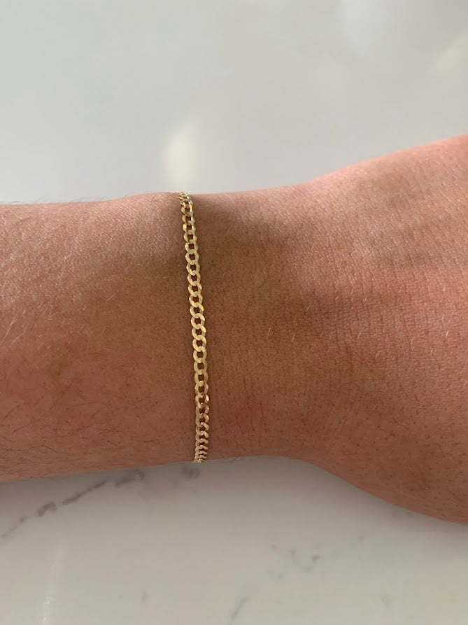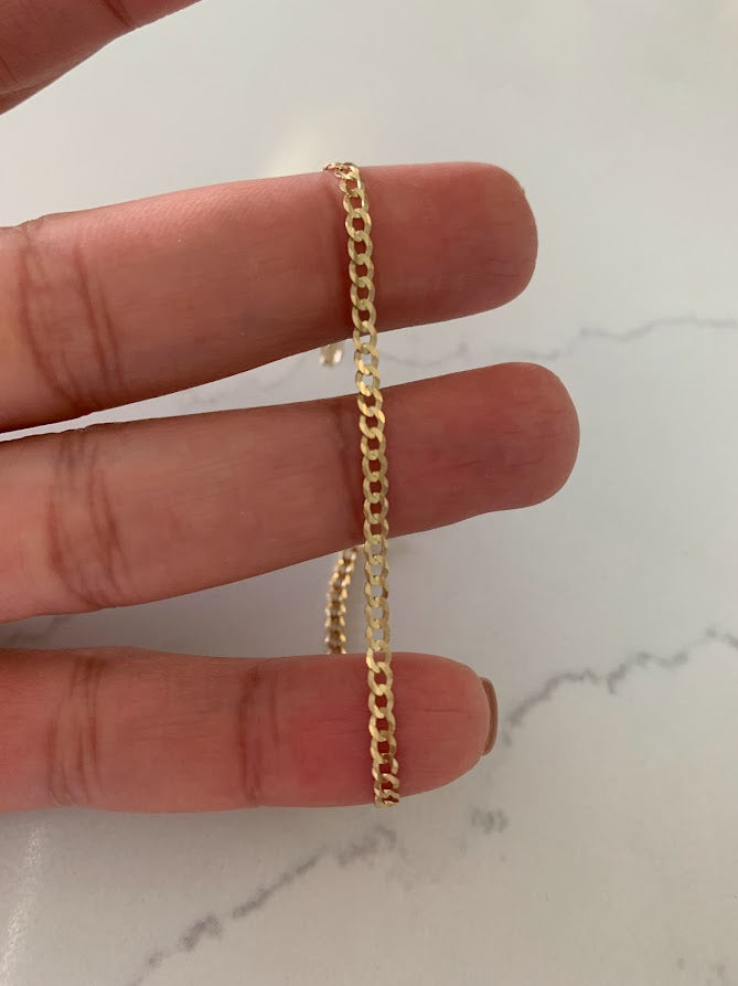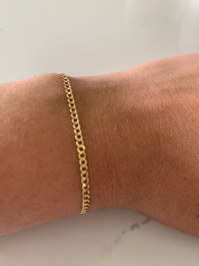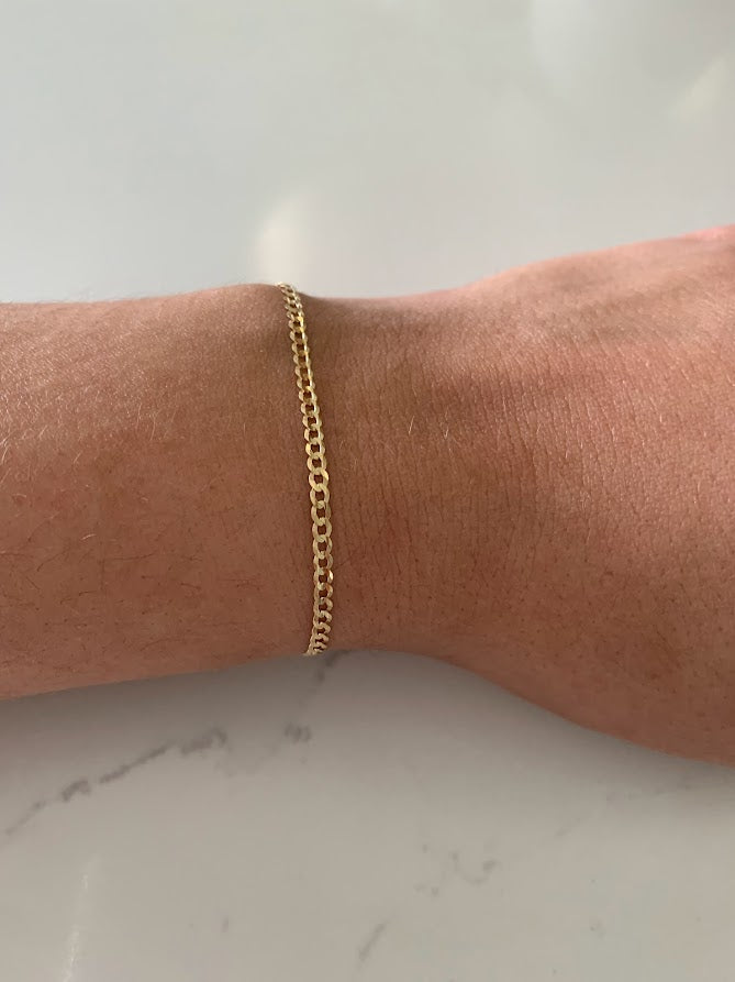 14K Gold Cuban Link Bracelet , 2.7MM Cuban Concave Open Link, 7" Length, Lobster Clasp, Adult Bracelet