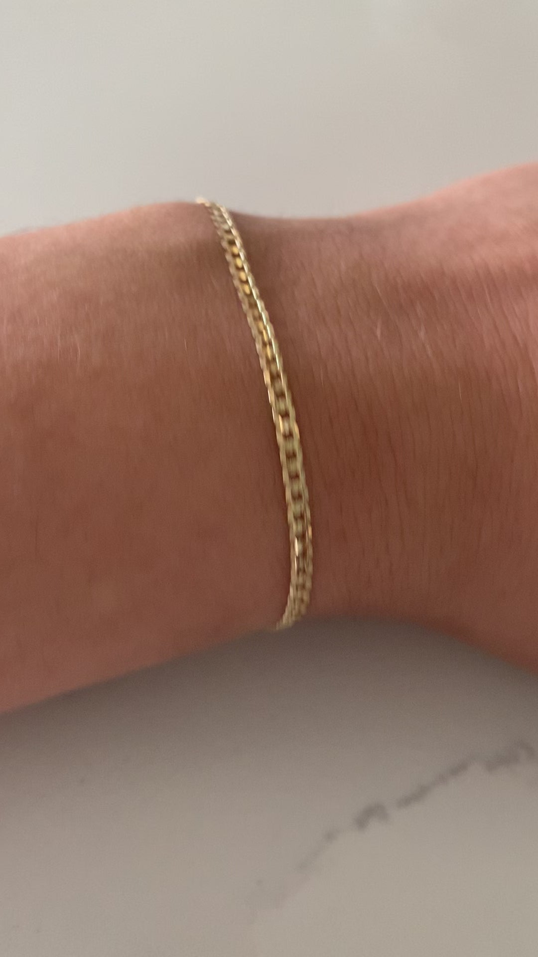 Great bracelet for everyday wear. It is 14K solid Gold. The 14K Gold Bracelet makes a great gift for any loved one Birthday present. Get yours today.