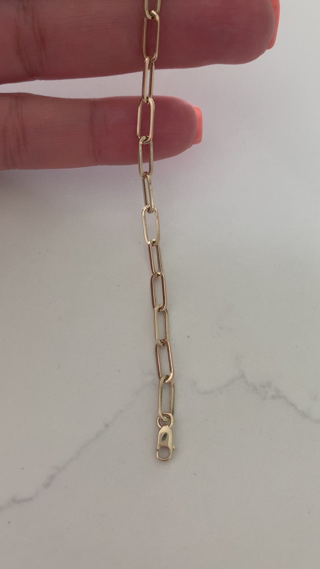 14k Solid Gold Paperclip Link Bracelet | Rectangular Link Chain Bracelet | Everyday Staple Bracelet