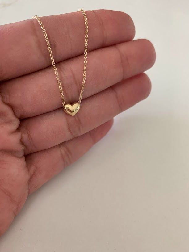 14K Gold Heart Necklace | Puffed Heart Necklace | Dainty Heart Gold Necklace | Solid Gold Heart Necklace | 16"+2"