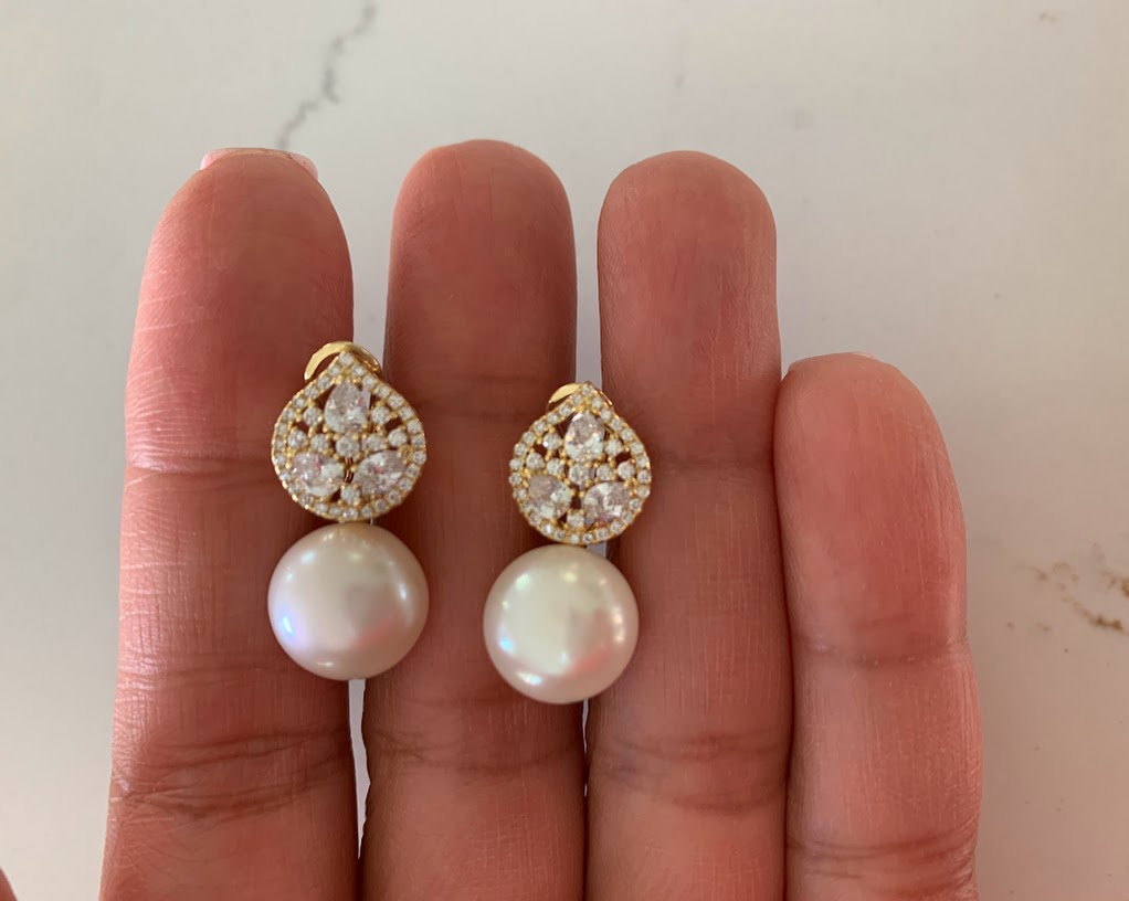 These large pearl drop earrings are the perfect bridesmaid gift. With a round-shaped cream pearl design, these glamorous earrings can be worn alone or combined with other earring styles for a wedding day look. A great gift for Valentine's Day, Mother's Day, Anniversary and Christmas.