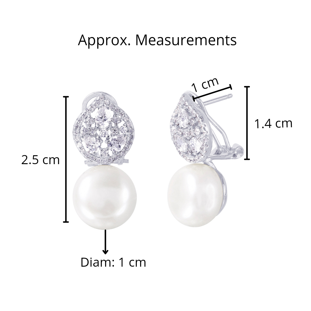 Round Large Pearls on Oval Baguette and CZ | Baguette Earrings | Gold & Silver Bridal Earrings | Bridesmaid Wedding Gifts for Her