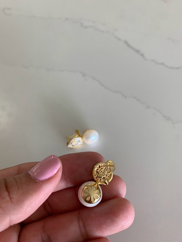 ⁙ Materials: Sterling Silver, 18K Gold over Silver, Cubic Zirconia, Fresh Water Pearl
