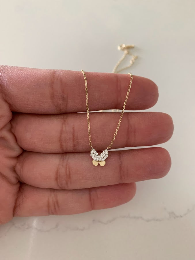 14K Yellow Gold Butterfly Necklace 16"+2, Dainty Butterfly Chain, Minimalist Necklace, Layering Necklace, Butterfly Chain