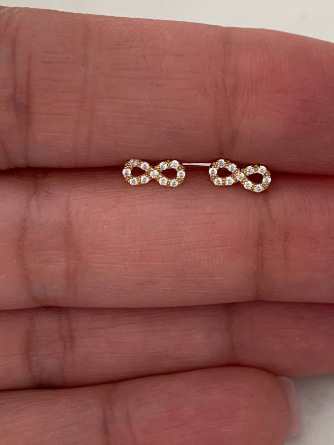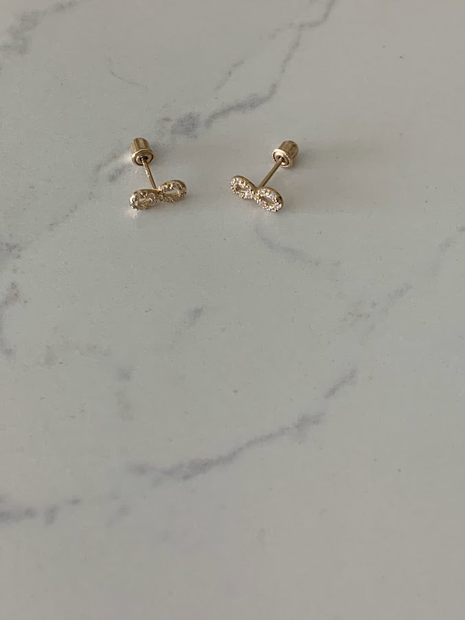 Infinity Earrings in 14K Yellow Gold, Tiny Screw Back Earrings, Dainty Infinity Studs, 14K Gold Earrings, Figure 8 Earrings, Everyday Studs