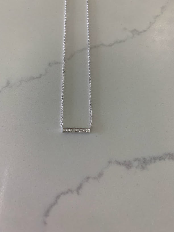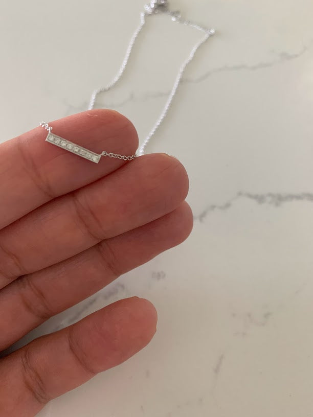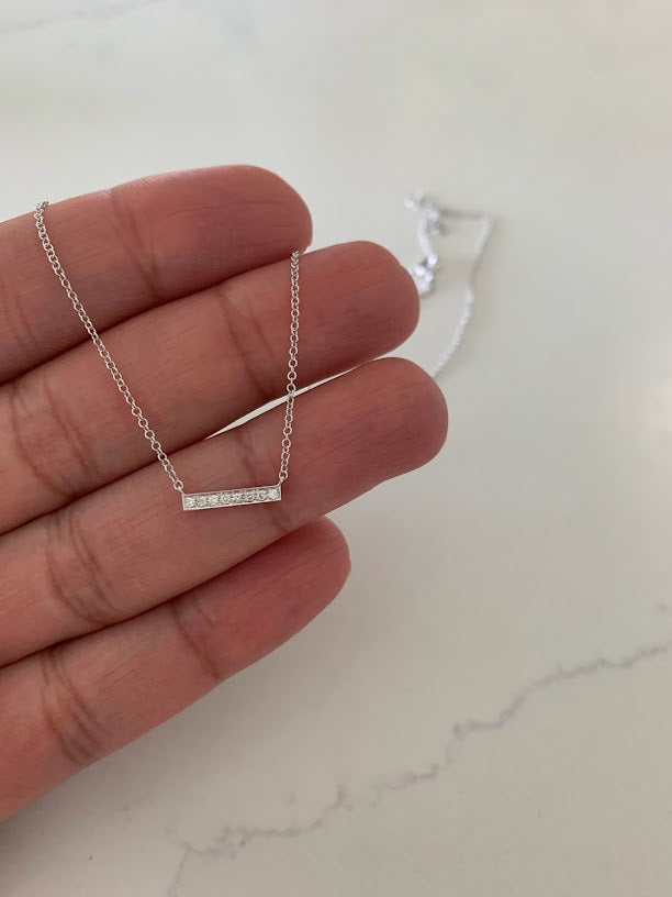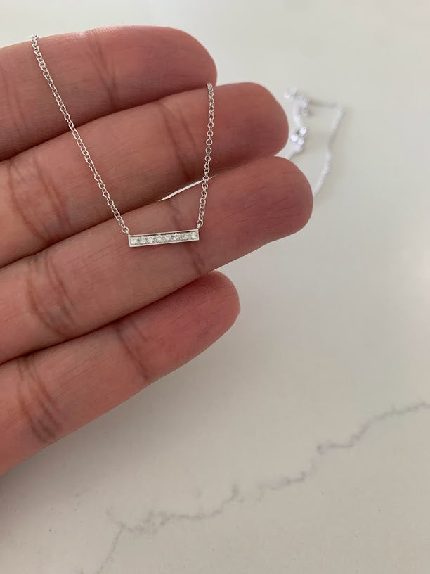 14K Gold Diamond Bar Necklace | 14K Gold Bar Necklace  | Layering Gold Chain | SOLID GOLD | Genuine Diamonds Bar Necklace