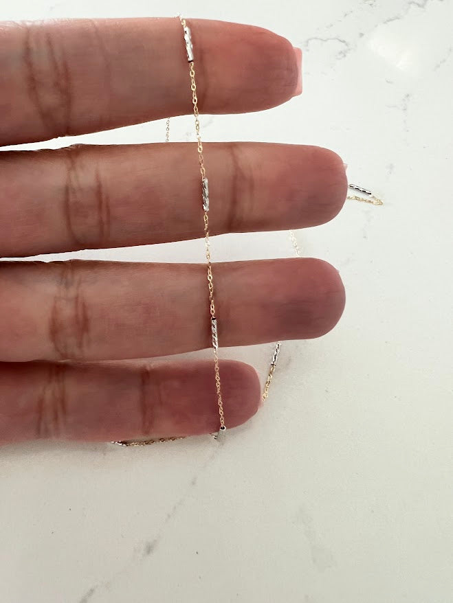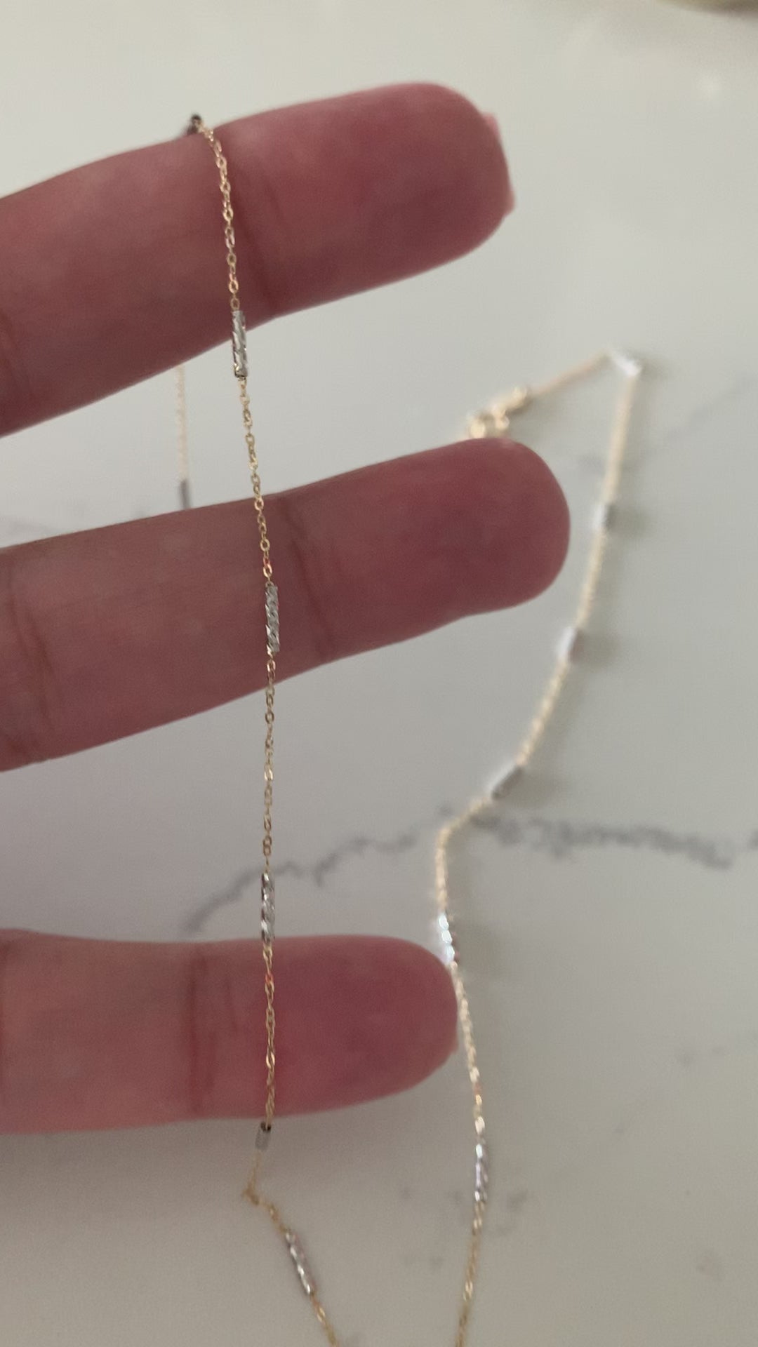 14K Gold Two Tone Chain | Dainty White and Gold Choker | 16-18" Multicolor Statement Choker | Sparkly Satellite Chain | Rectangular Link