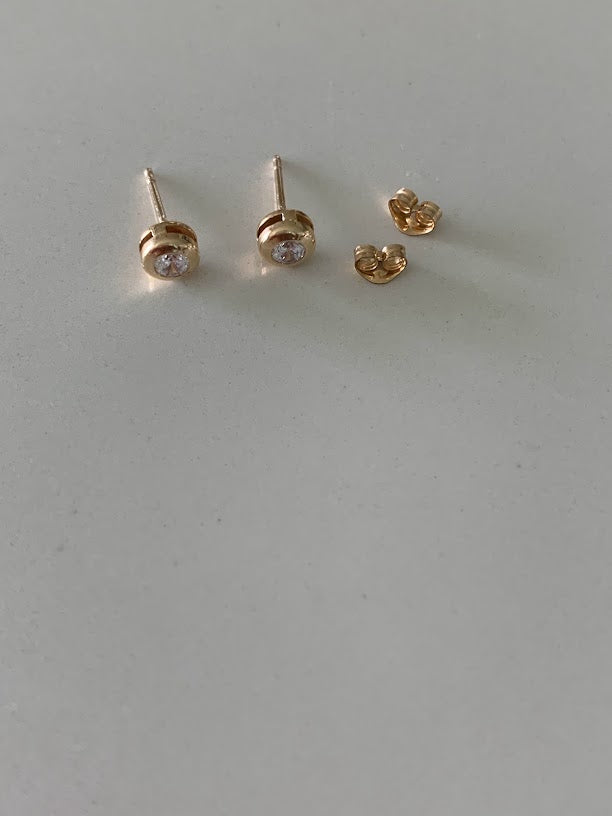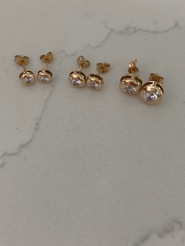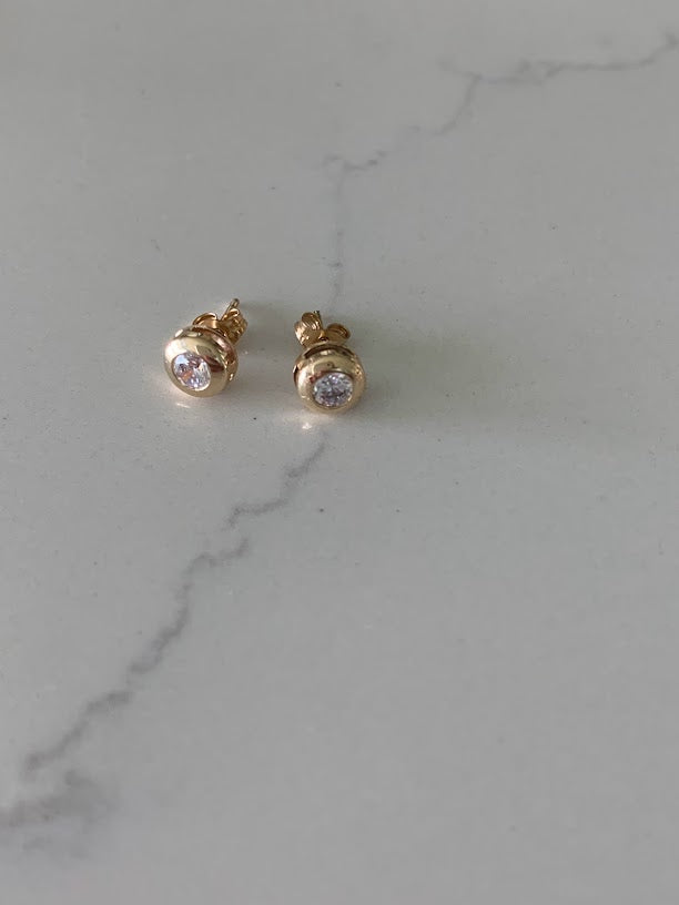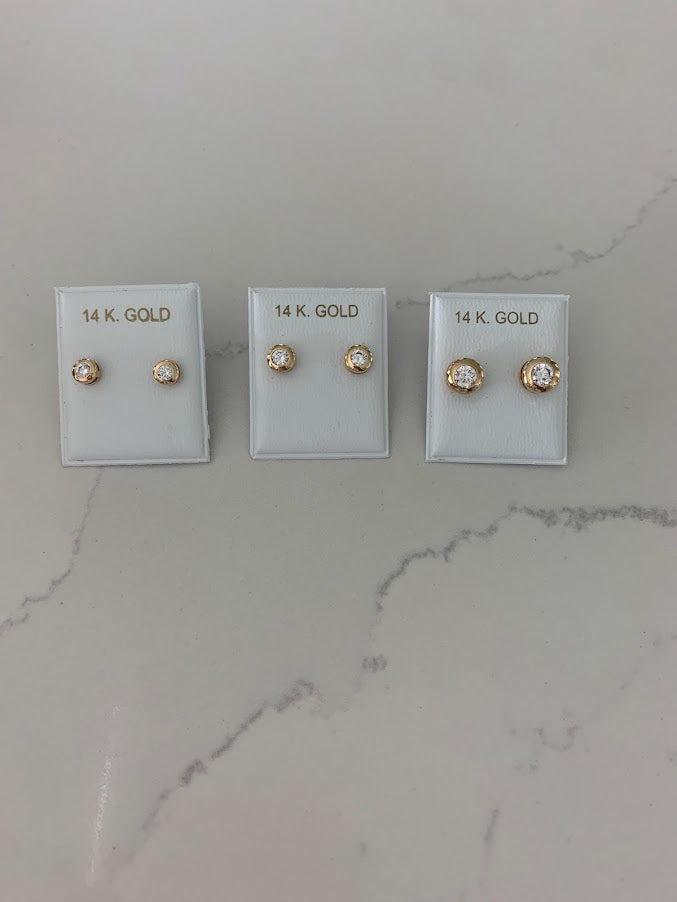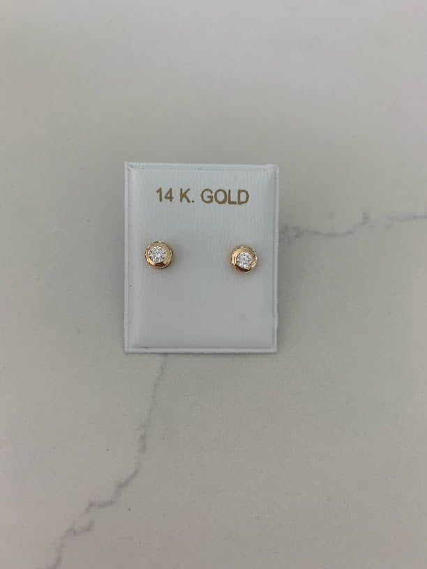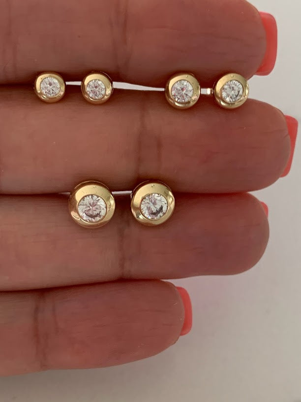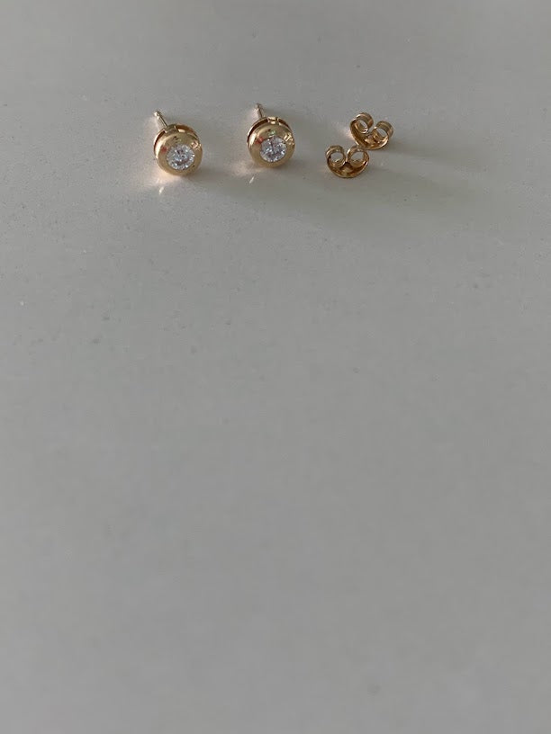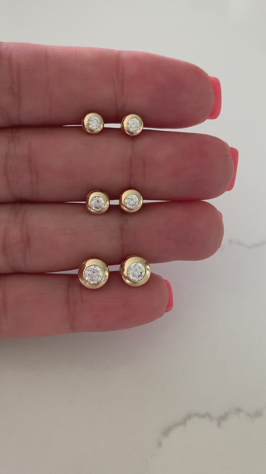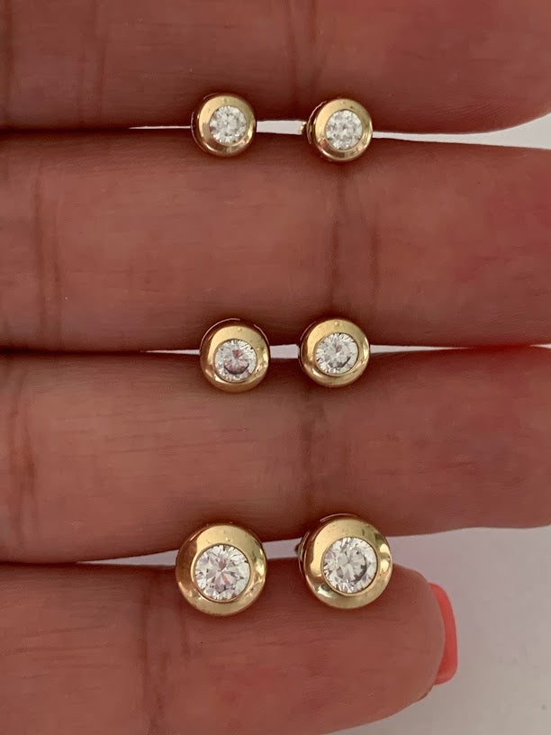 14K Yellow Gold Bezel Stud Earrings, Solitaire Earrings, Cubic Zirconia Studs, Dainty Bezel Studs, 5MM, 6MM, 7MM Shiny Everyday Earrings