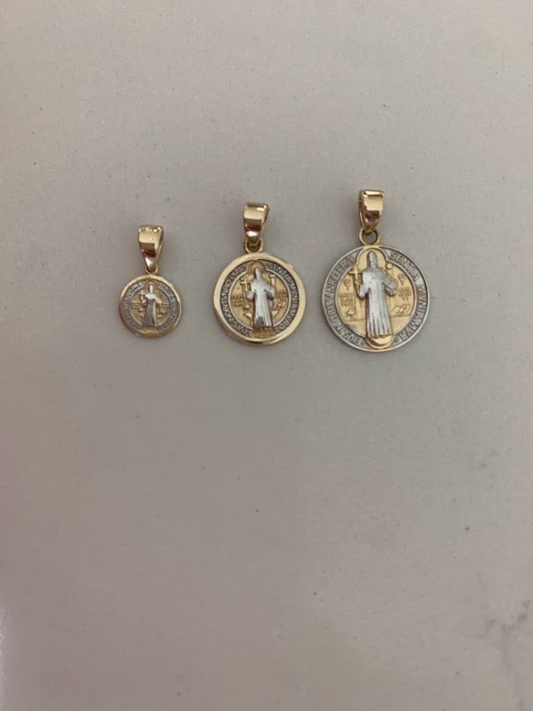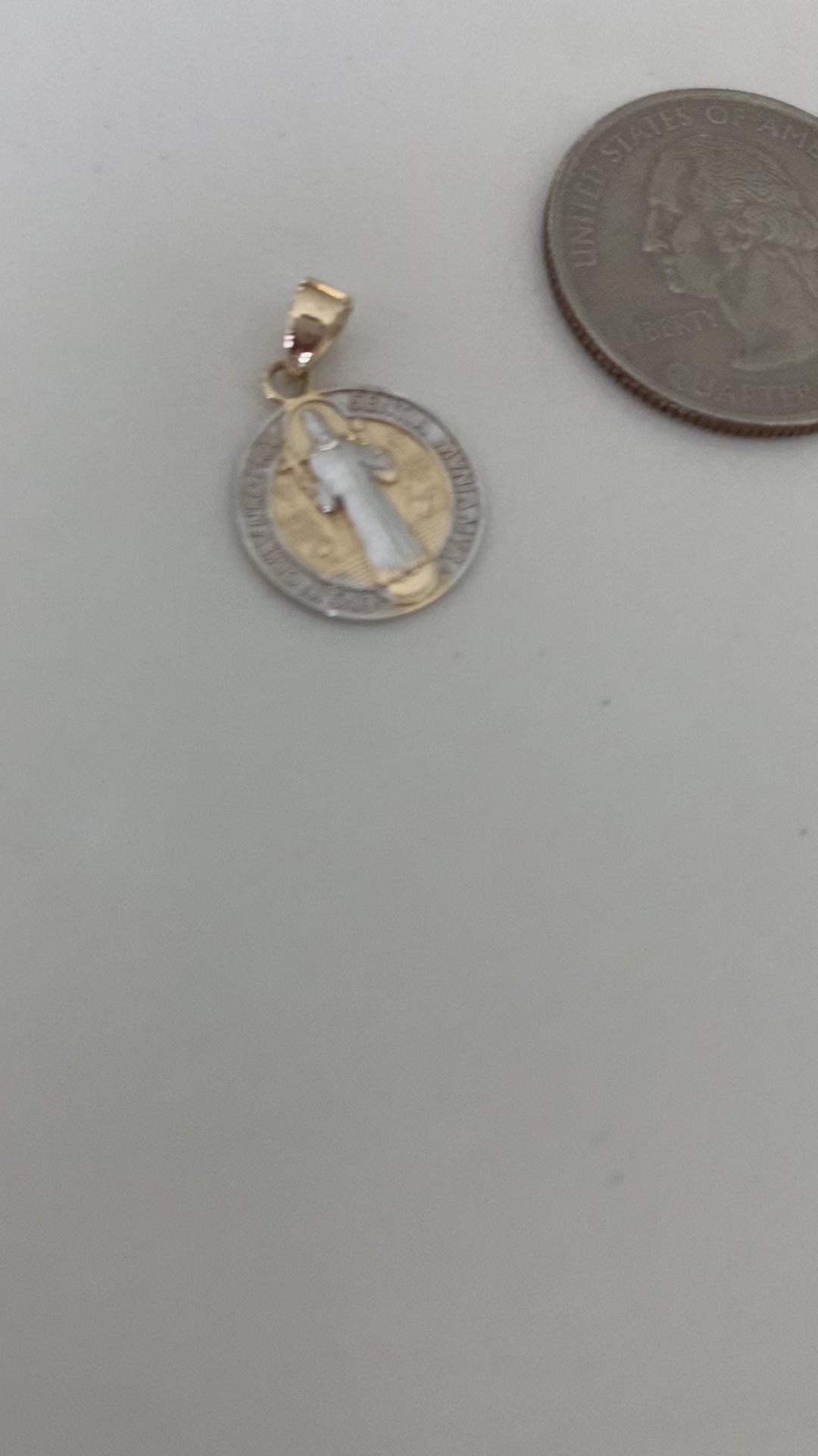 10MM 14K Solid Gold Saint Benedict | Yellow and White Religious | Saint Benedict Pendant | Two TONE 14K Solid Gold Pendant