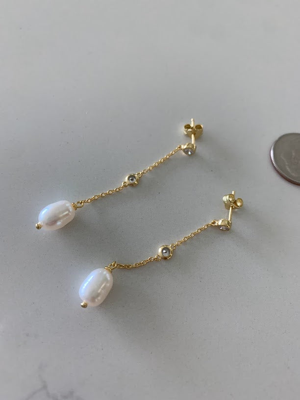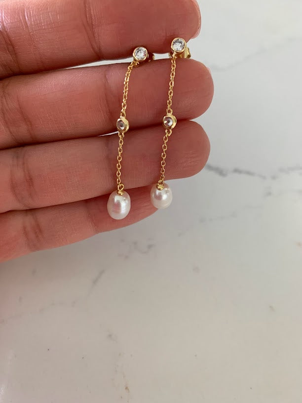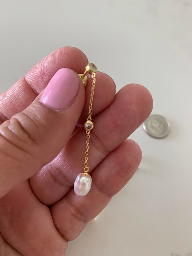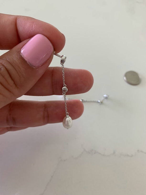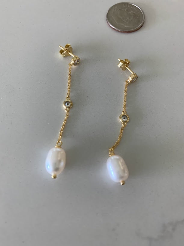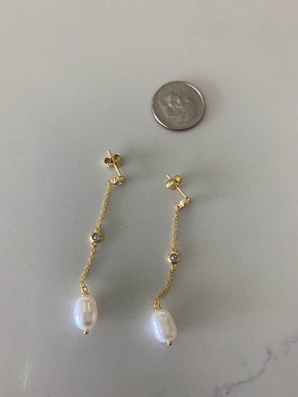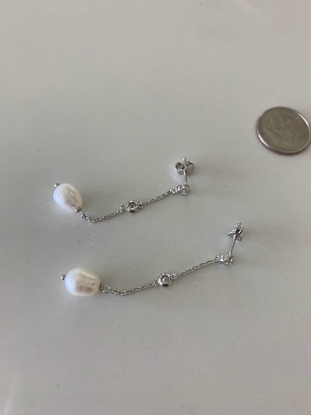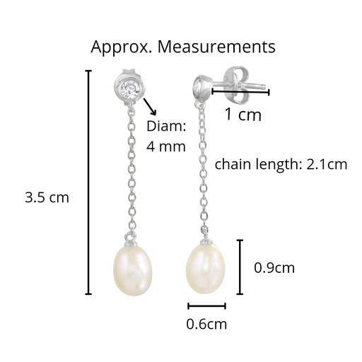 ♦ Earrings Measurements: 3MM Cubic Zirconia, 8MM Pearl, Total Length 45MM, Pearls are fresh water peal pearls