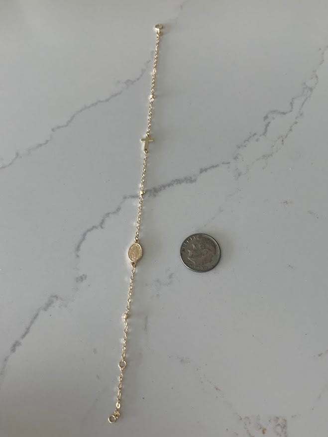 14K Yellow Gold Rosary Bracelet, Solid Gold Rosary Bracelet, Miraculous Virgin Mary Medal and Cross Bracelet, Religious Jewelry For Women