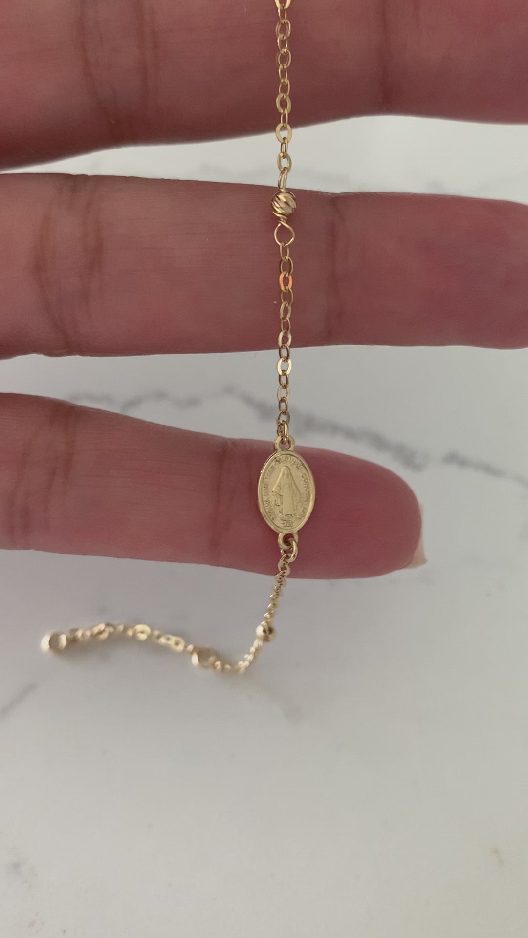 14K Yellow Gold Rosary Bracelet • Solid Gold Rosary Bracelet with Miraculous Virgin Mary Medal and Cross • Religious Jewelry For Men and For Women