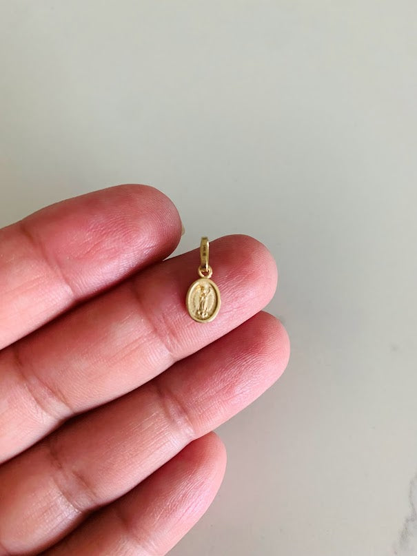 14K Tiny Gold Virgin of Miracles | Yellow Gold Pendant | Catholic Pendant | 14K Solid Gold Pendant
