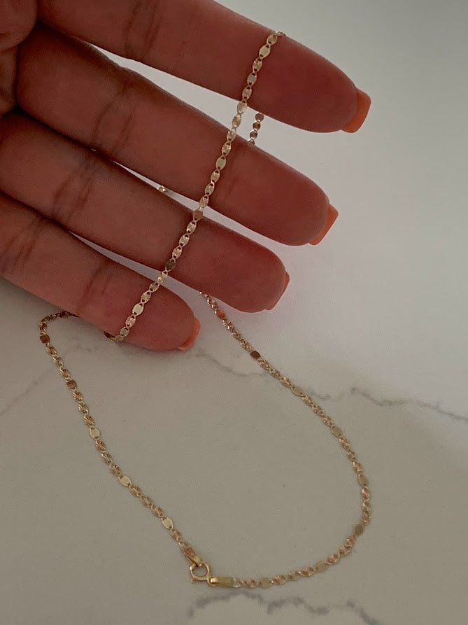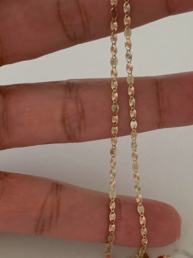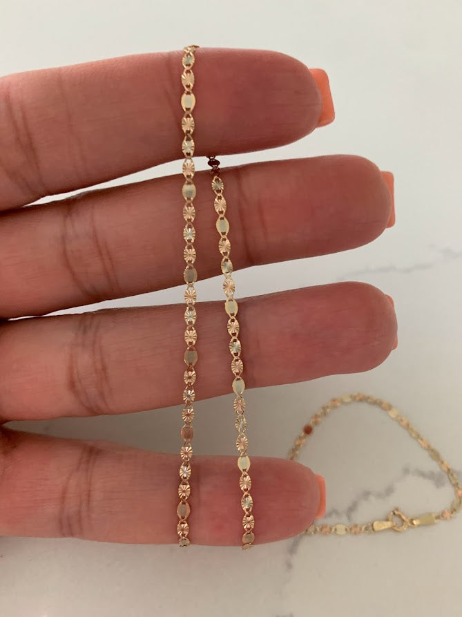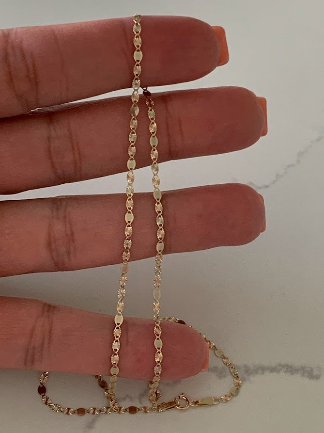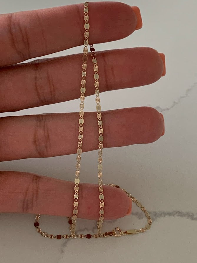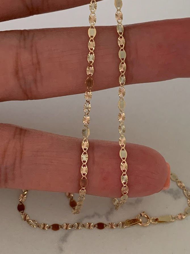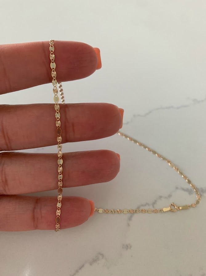 Solid 14K Tricolor Gold Chain, 2.1mm Flat Valentino Chain,  Shiny Diamond Cut, Dainty Mirror Chain, 14K Gold Choker, BEST SELLER