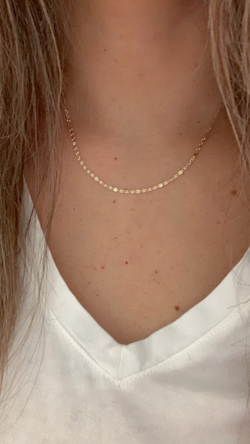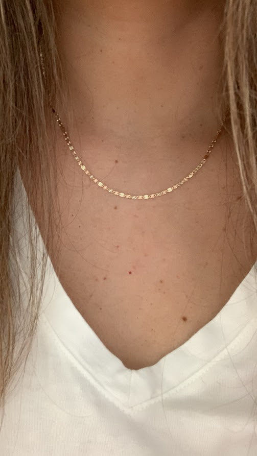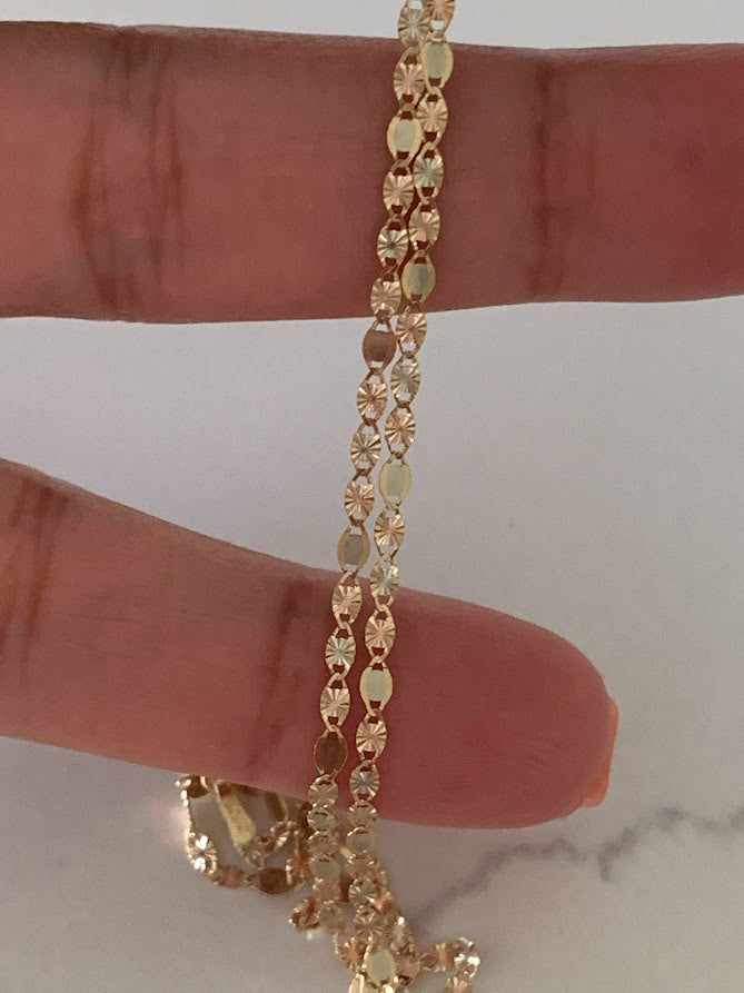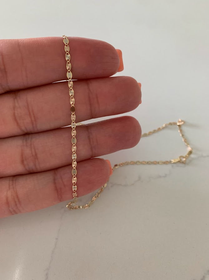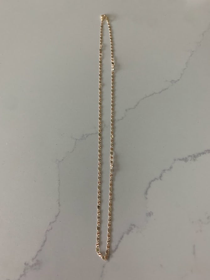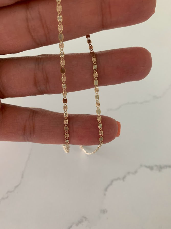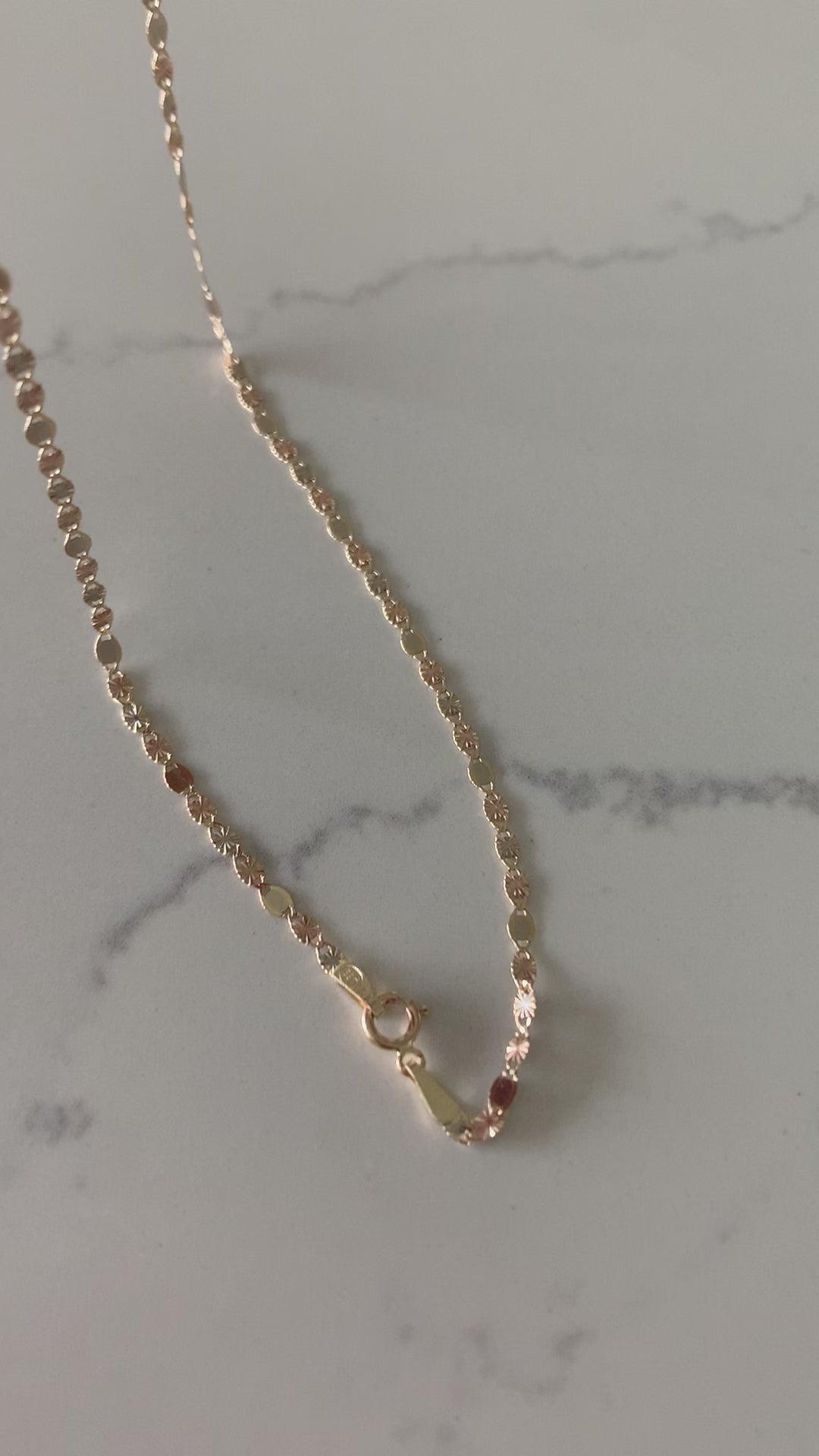 Solid 14K Tricolor Gold Chain, 2.1mm Flat Valentino Chain,  Shiny Diamond Cut, Dainty Mirror Chain, 14K Gold Choker, BEST SELLER