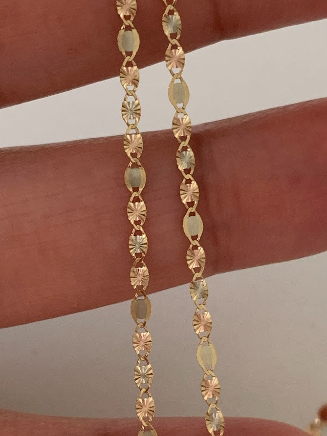 Solid 14K Tricolor Gold Chain, 2.1MM Flat Valentino DC Chain BEST SELLER