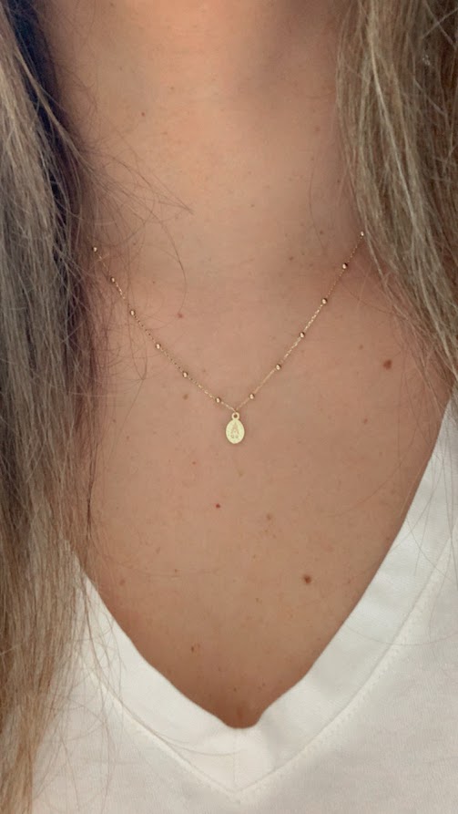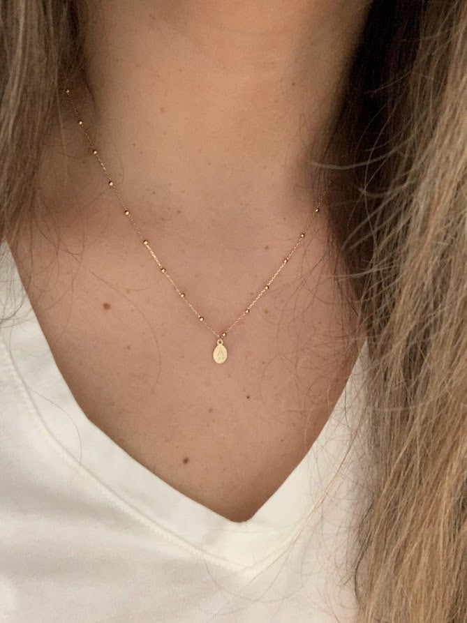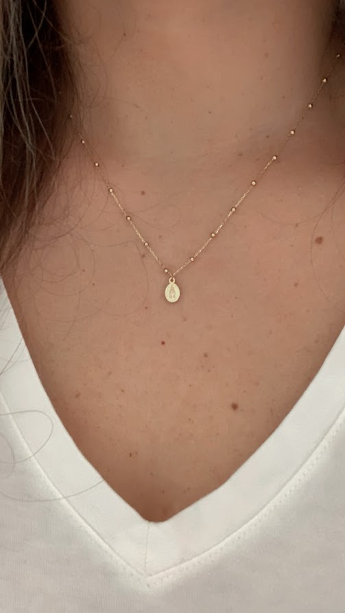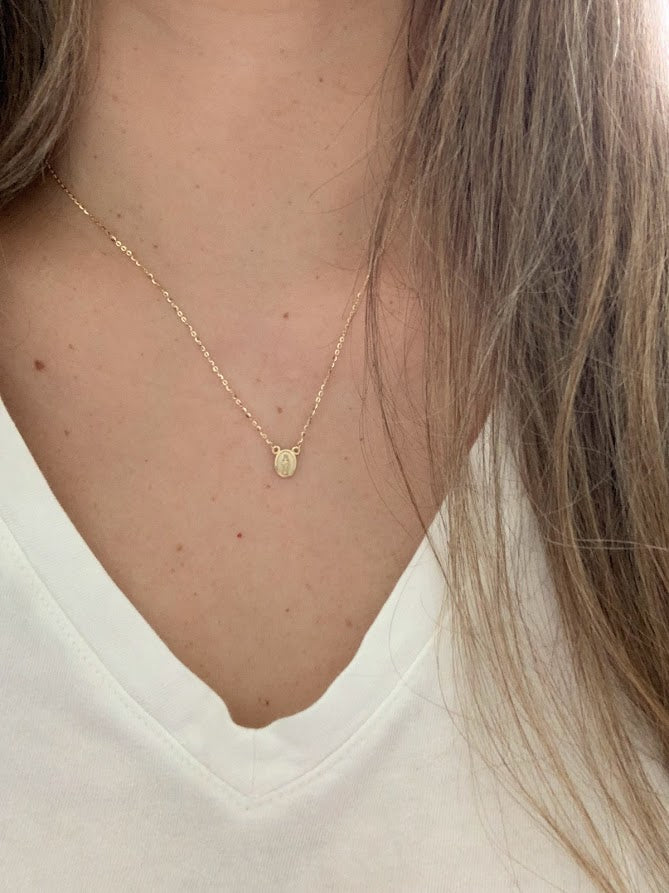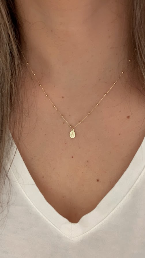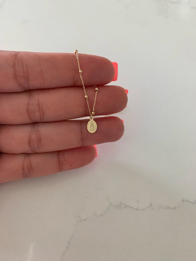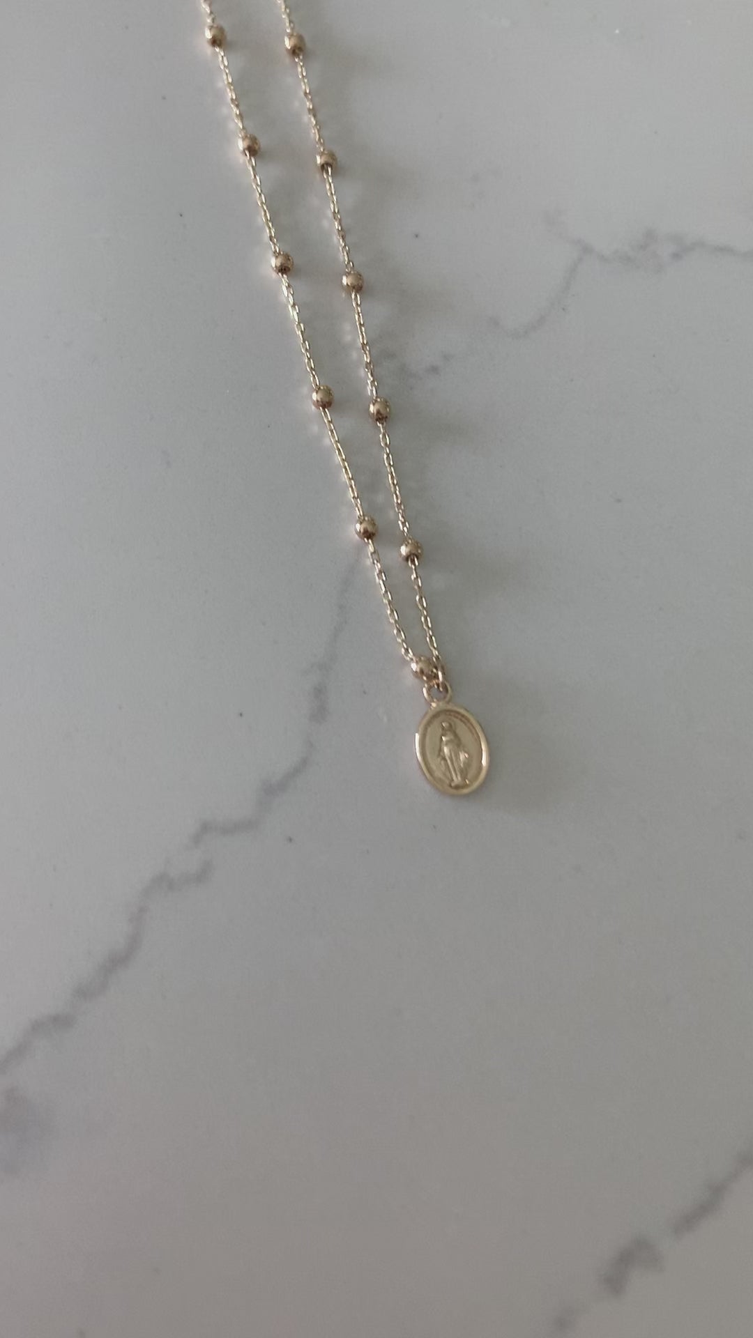 14K Yellow Gold Dainty Solid Gold Miraculous Virgin Mary, Tiny Virgin Medal Necklace, Religious Jewelry For Women, Virgin Mary Necklace,  Beaded Chain