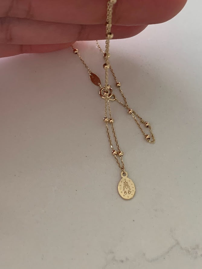 14K Gold Virgin of the Miraculous Medal Beaded Necklace | Genuine Gold | Dainty and Delicate Religious Necklace