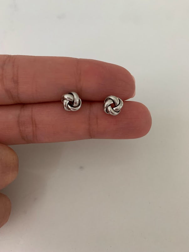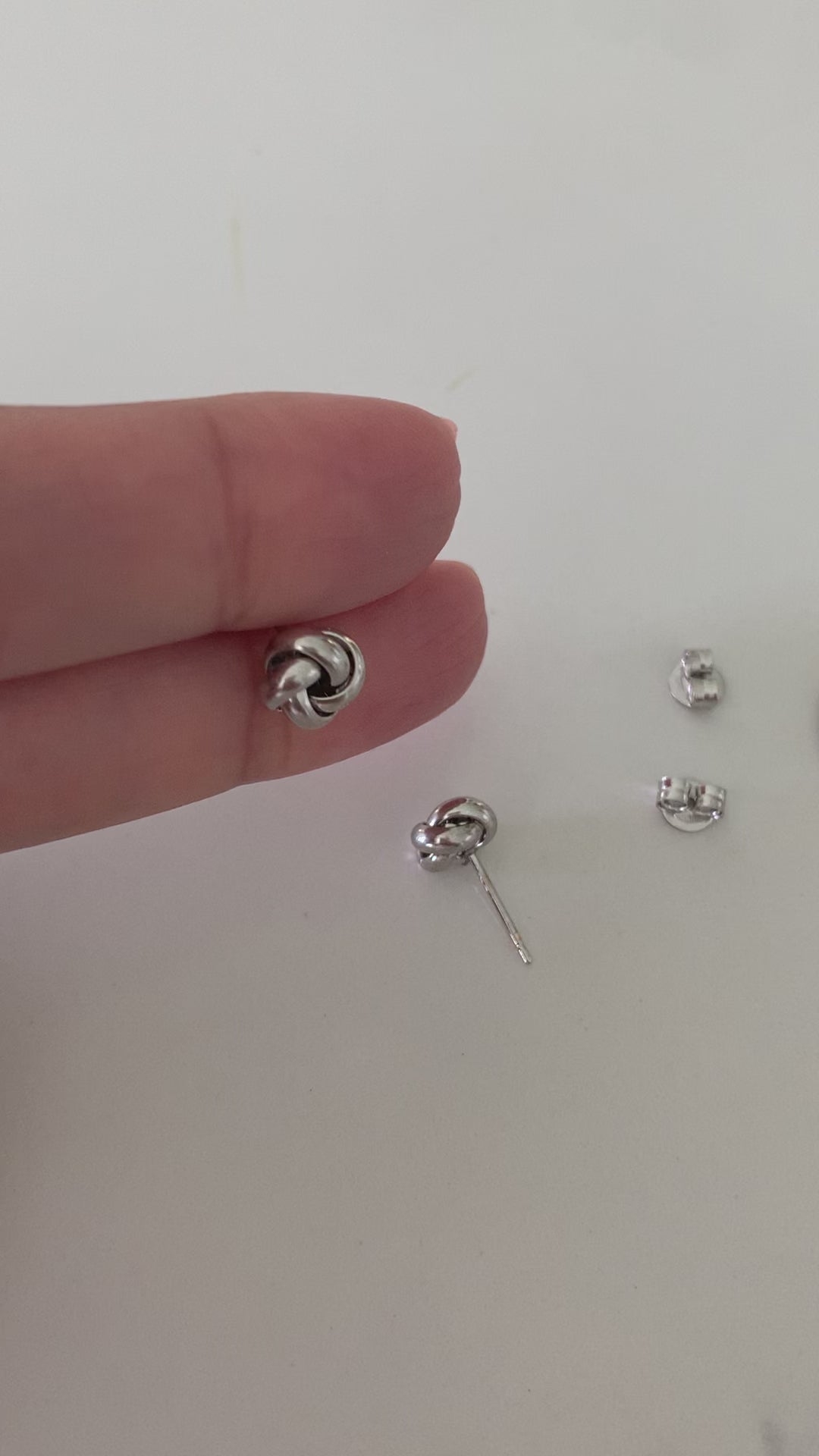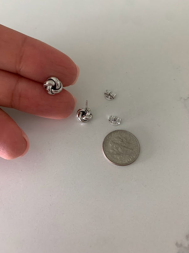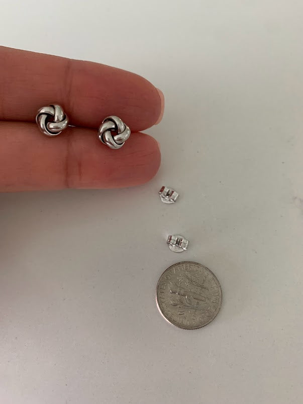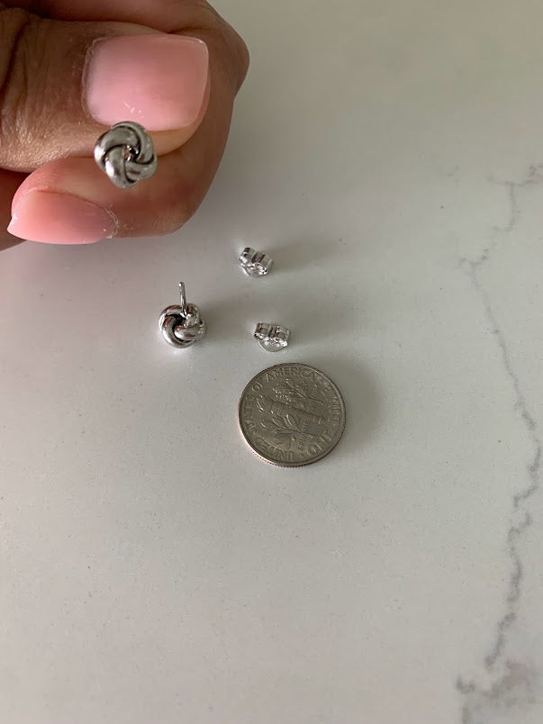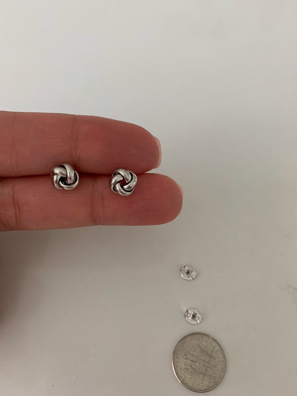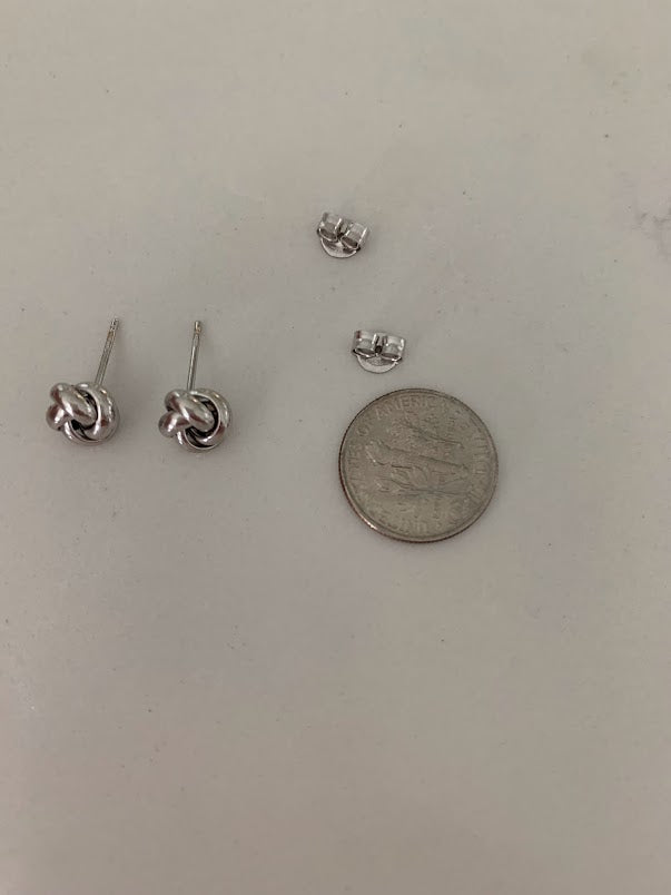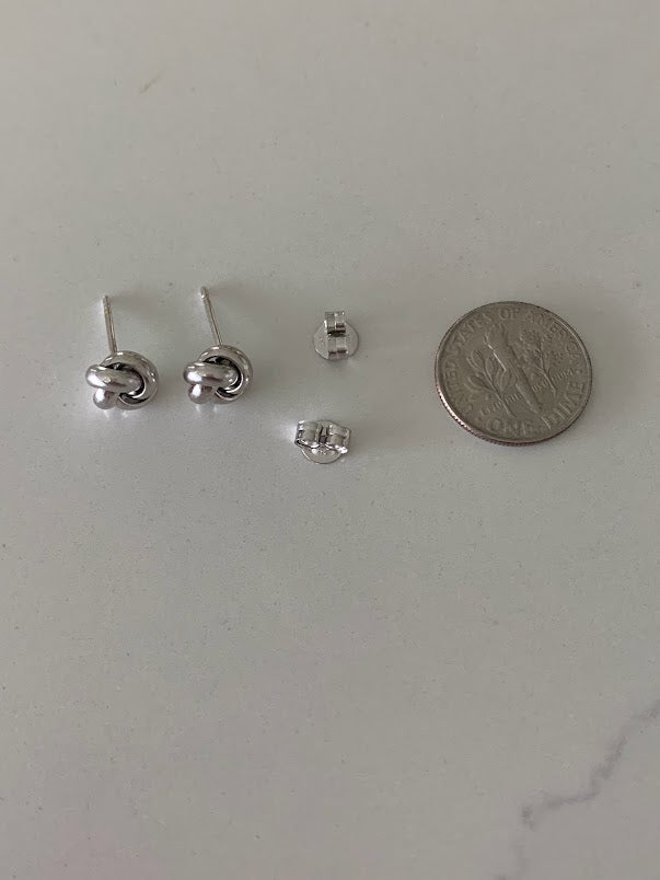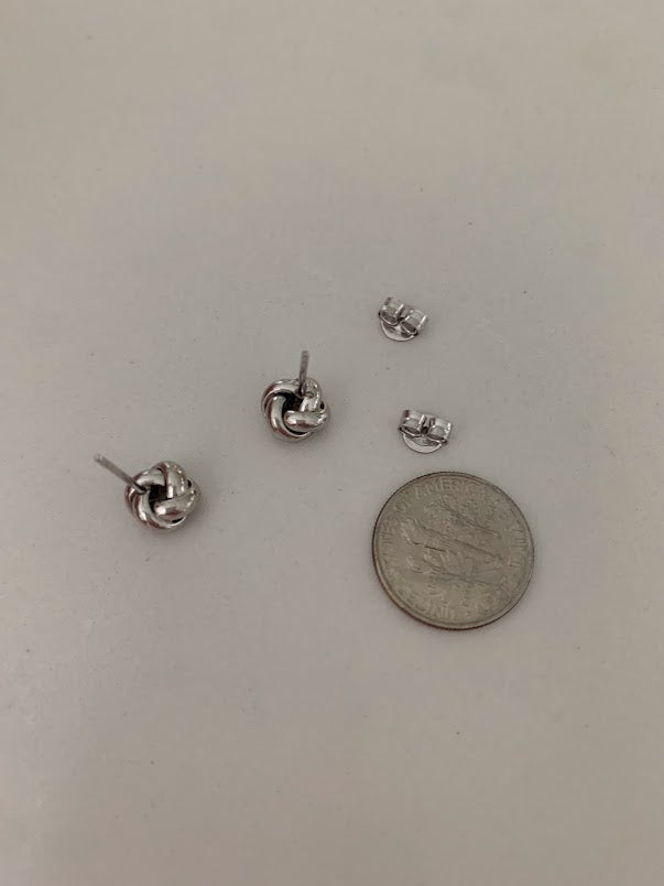 14K Solid Gold Love Knot Earrings, Medium Size, White Gold