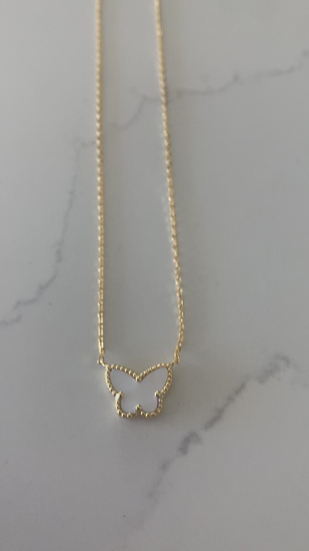 Mother Pearl Gold Butterfly Necklace 17.5"+2, Butterfly Chain, Everyday Necklace, Layering Necklace, Butterfly Chain, Butterfly