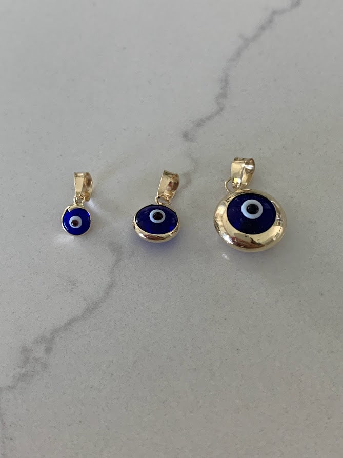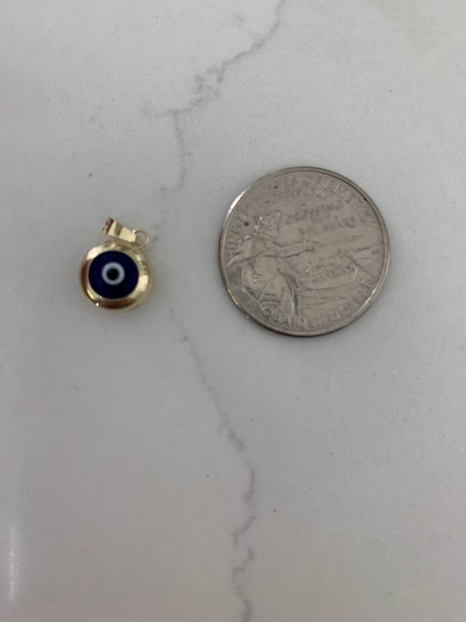 14k Solid Gold Evil Eye Pendant | Gift for her | Evil Eye Protection | 14k Gold Turkish Eye Charm Pendant | 14k Solid Genuine Yellow Gold