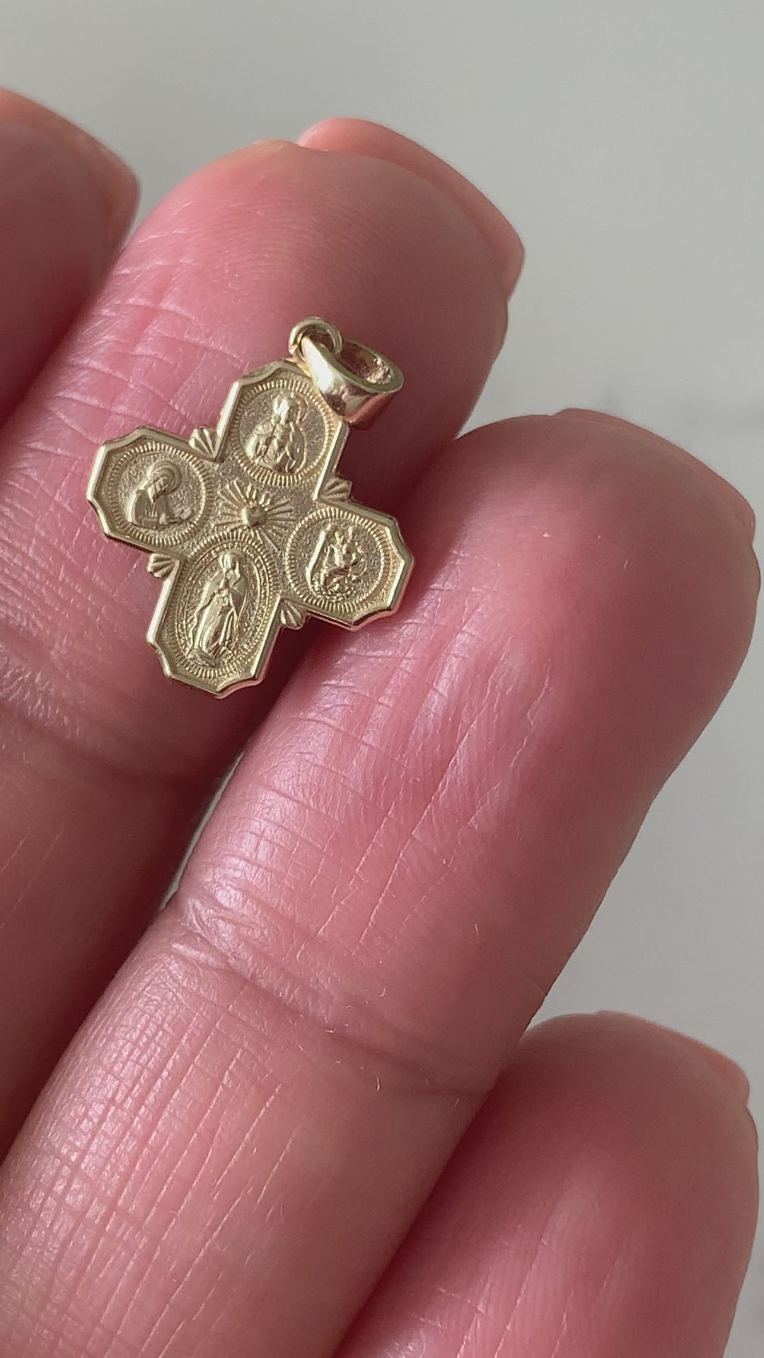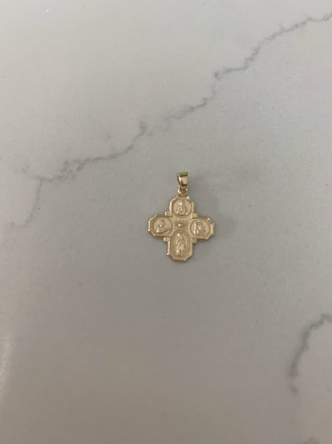 14K Solid Gold Cross | Medium Yellow Gold Cross | Catholic Pendant | 14K Solid Gold Cross Christian Pendant | Four Saint Cross