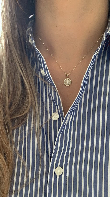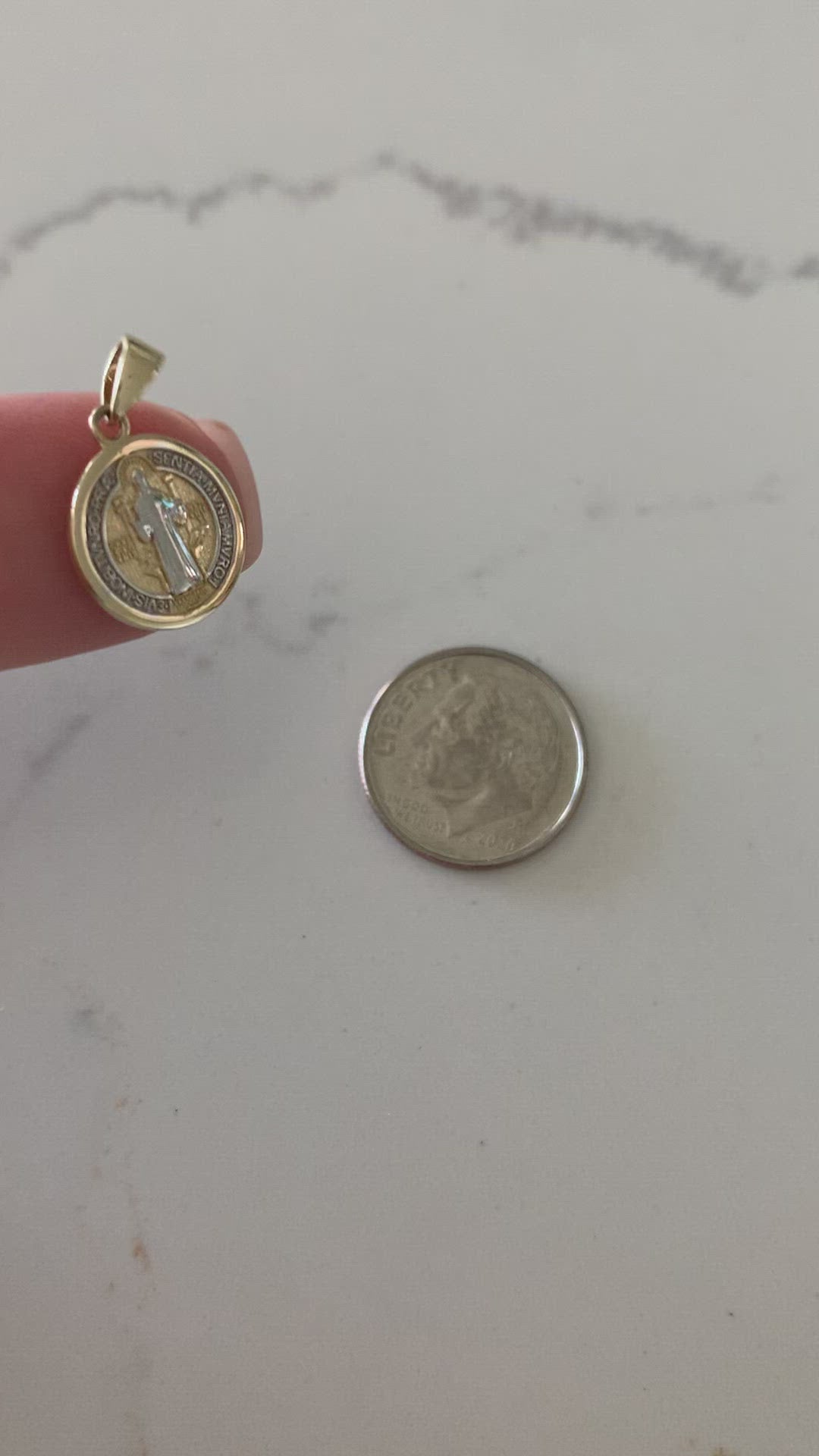 14K Solid Gold Saint Benedict Pendant can be combined with any other of our pendants to personalize your necklace