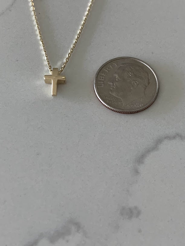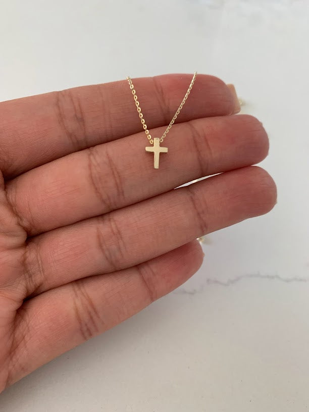 14K Gold Tiny Cross Necklace, Religious Jewelry Gift, Women's Christian Faith, Small Cross Pendant, Bold Cross Gift