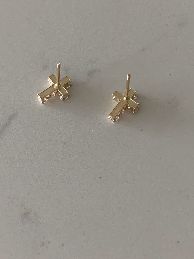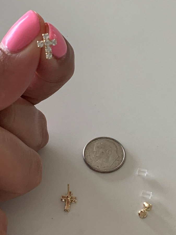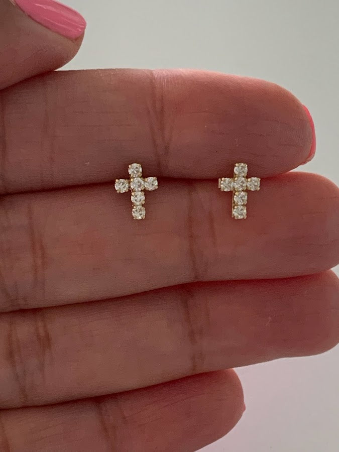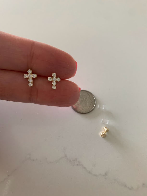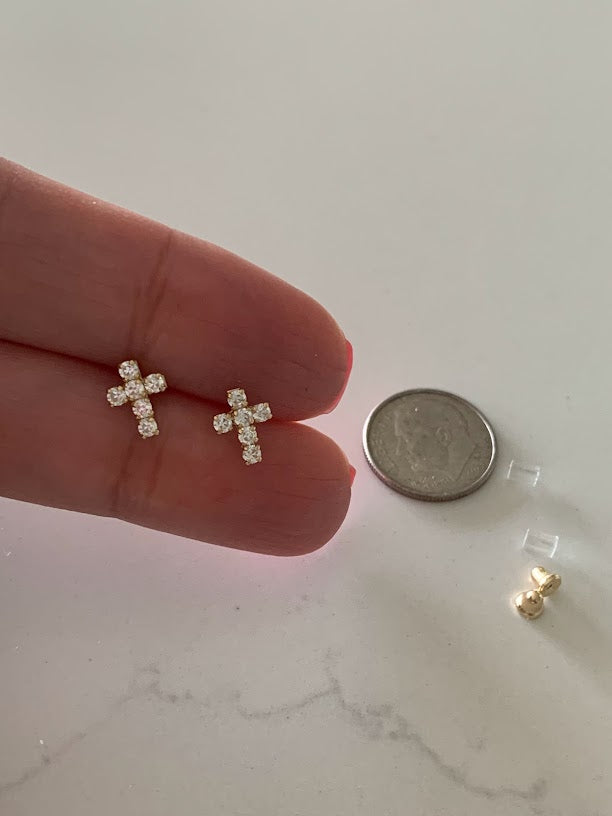 14K Gold Cross Earrings | Dainty Cubic Zirconia Cross Earrings | Gold Cross Studs | Minimalist Earrings | Baptism or Confirmation Gift