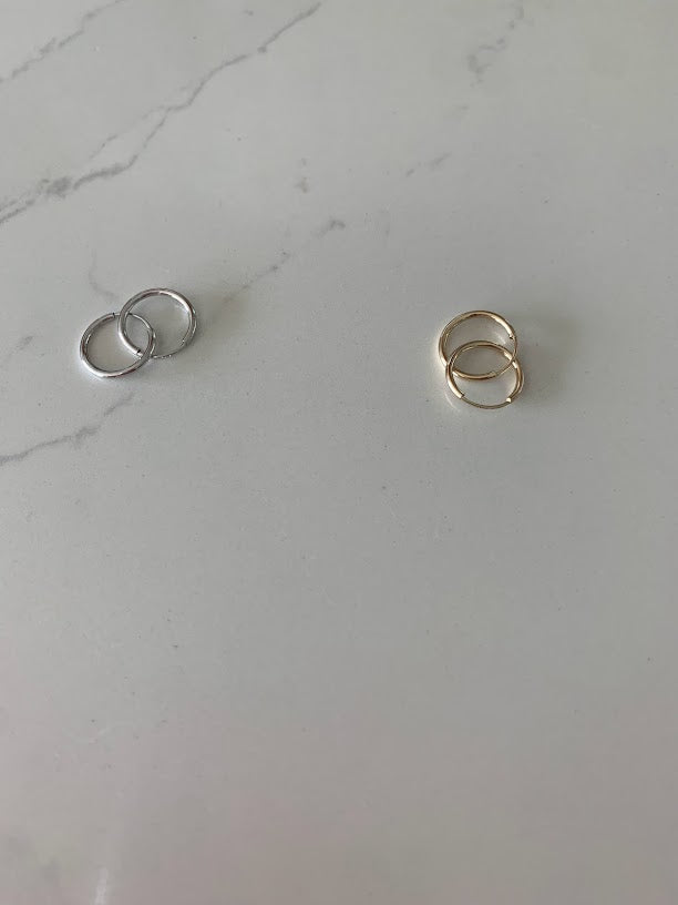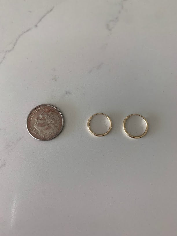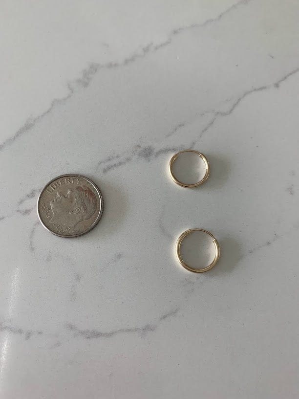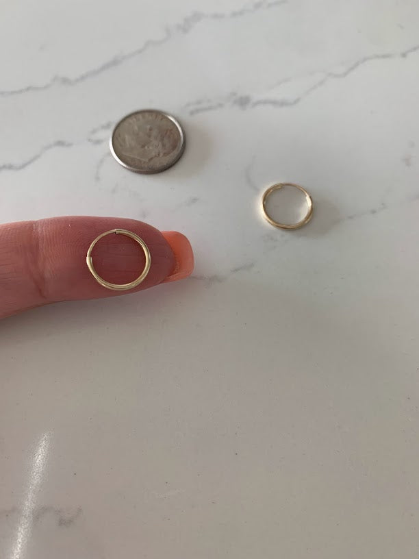 14KY 1mm Hoop Earrings, 14K Yellow Gold Endless Hoop Earrings, Essential and Minimal Round Hoops, Reaction-free Real, 14K Gold Cartilage