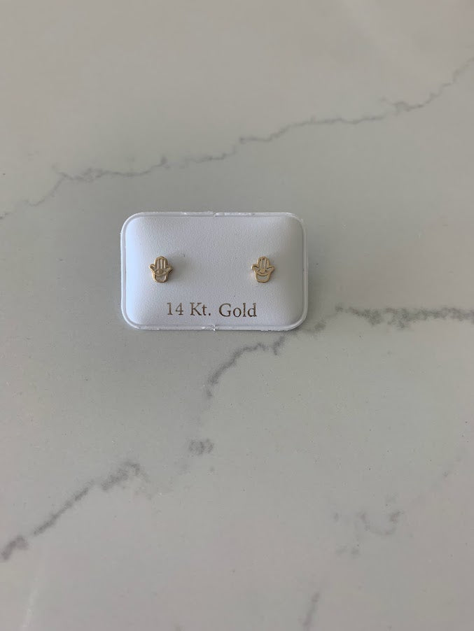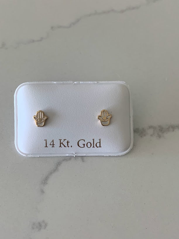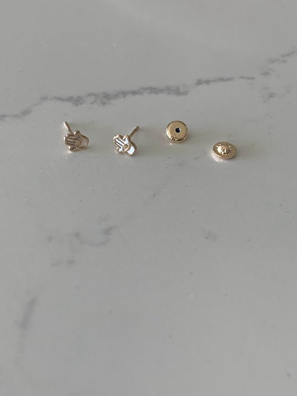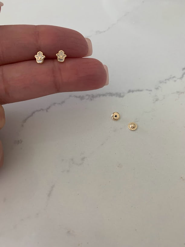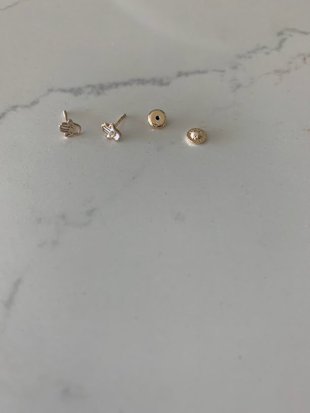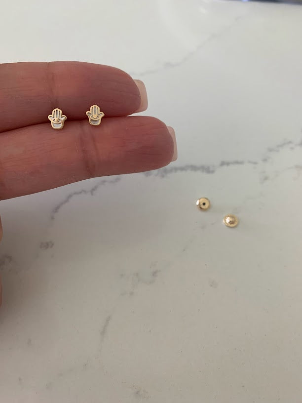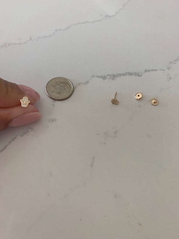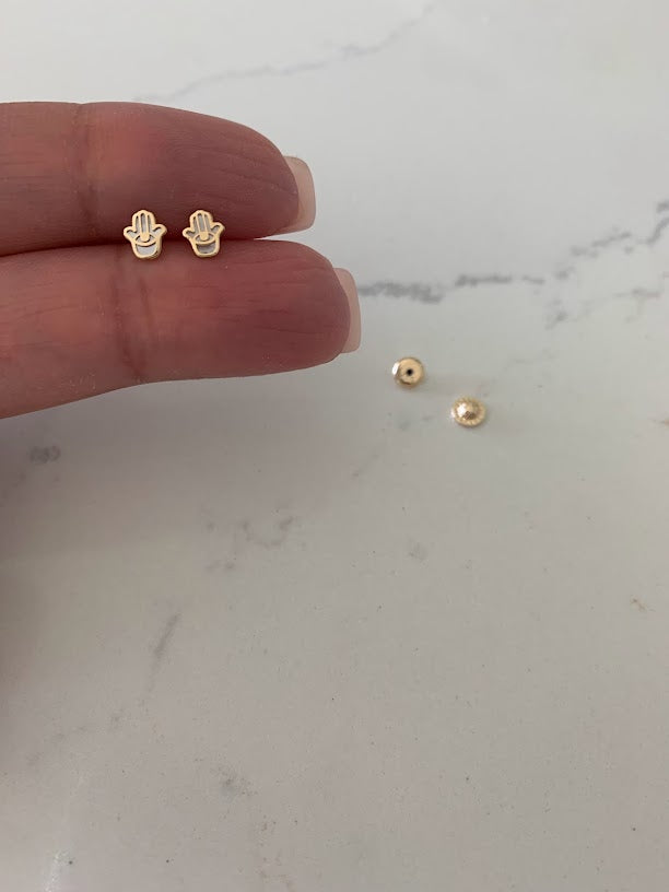 14K Gold Tiny Hamsa Earrings | Mother Pearl Earrings | Minimalist Earrings | Everyday Earrings | Dainty Earrings | 14K Gold Earrings | Hamsa