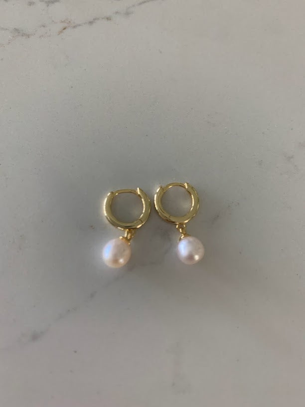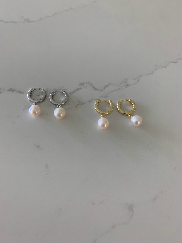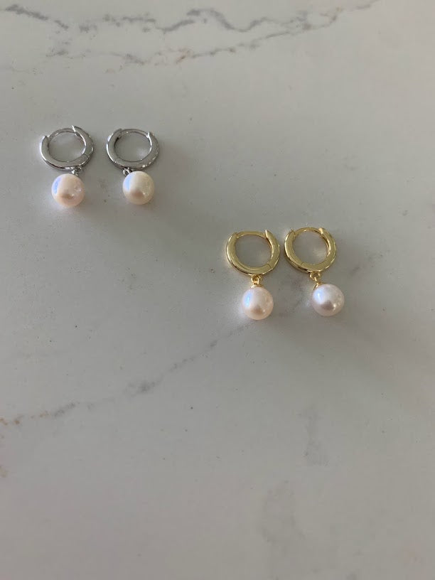 The Pearl Huggie Earrings are beautiful, affordable and dainty they are great for everyday wear. Available in three colors: Sterling Silver, 18K Rose Gold over Silver & 18K Yellow Gold over Silver. These earrings can be worn in combination of any other of our earring styles. A great idea for Valentine's Day, Mother's Day, Anniversaries and Christmas.
